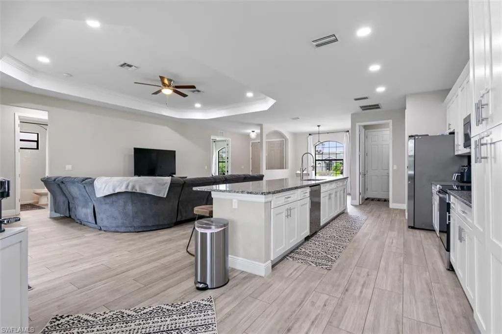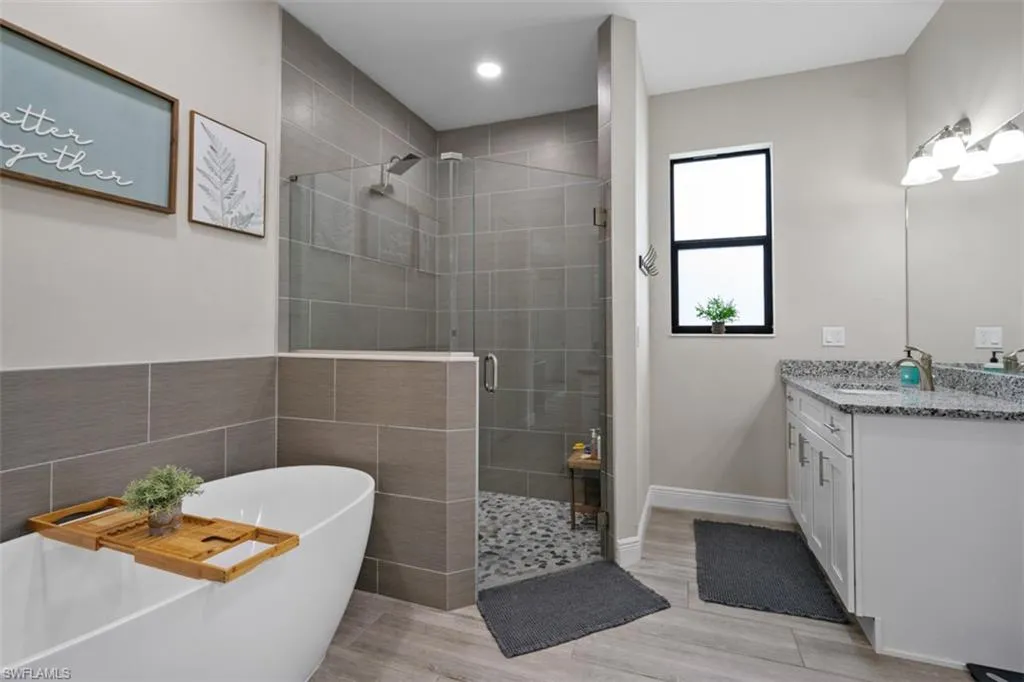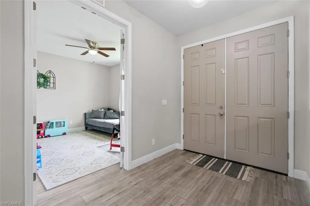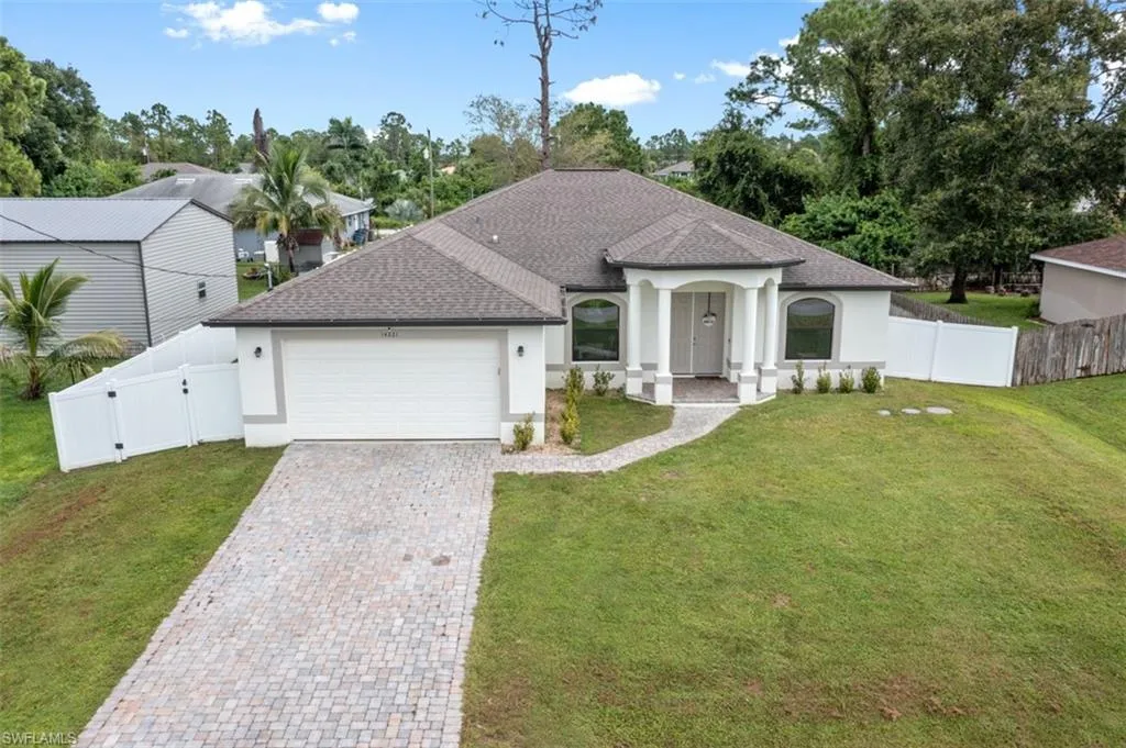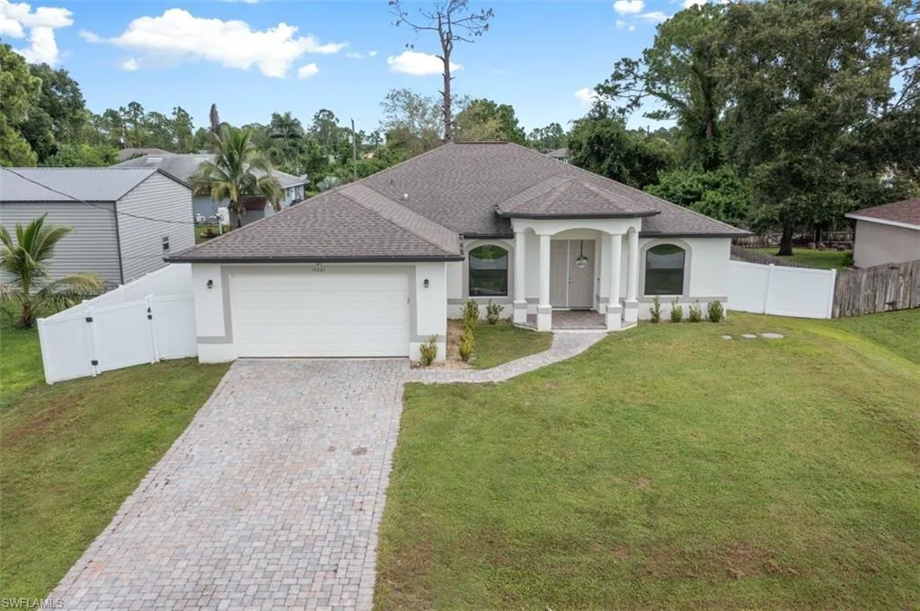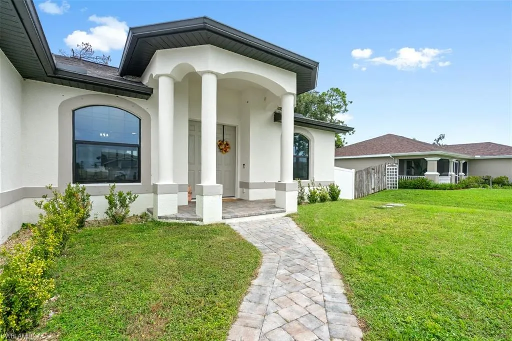 Welcome to this move-in ready 3-bedroom + den, 2-bath home located in the desirable Buckingham Park neighborhood. Built in 2020 and offering over 2,000 sq. ft. of living space, this property combines modern style with everyday comfort. Step inside to find an open and inviting layout featuring tile flooring throughout and 8-foot doors that enhance the spacious feel. The den provides flexibility as a home office, media room, or guest space. The spa-like master suite is a true retreat with a luxurious soaking tub, his-and-her vanities, and a walk-in shower. Enjoy private lanai access right from the master bedroom. Additional highlights include a 2-car garage and a low-maintenance yard. This home is tucked within Buckingham Park, a peaceful and established neighborhood. Don’t miss the opportunity to make this beautiful home yours—schedule your showing today!