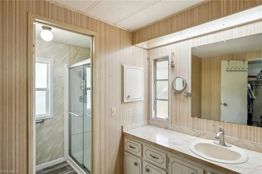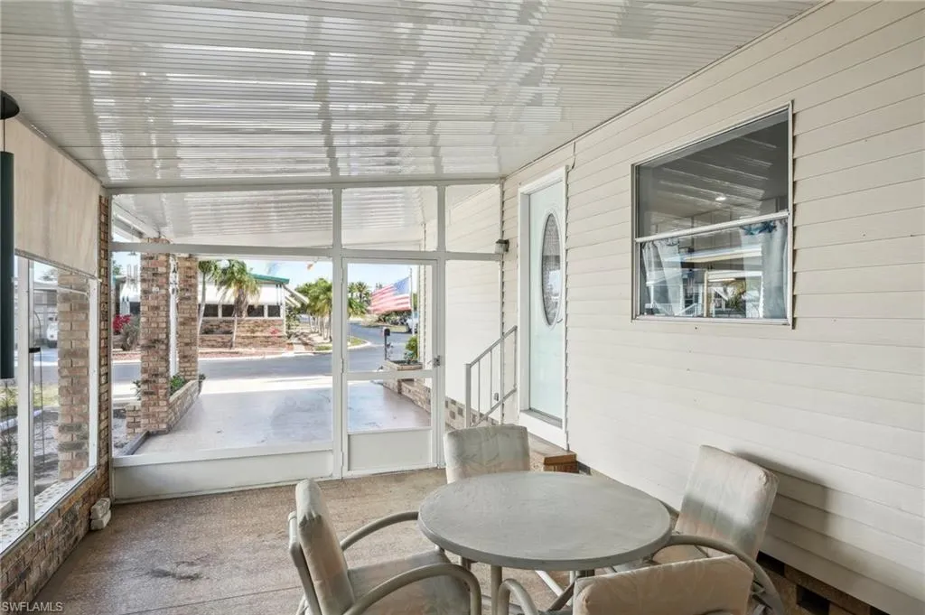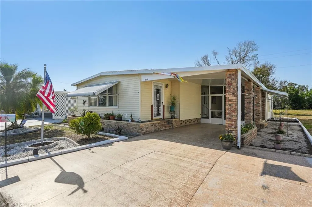 Charming 2 Bedroom, 2 Bath Furnished Home in a Pet-Friendly 55+ Community. Step into comfort and peace of mind with this beautifully partially updated, move-in ready home. Highlights include a newer TPO reroof, a newer A/C unit, upgraded return ductwork for enhanced cooling efficiency, new subflooring/flooring (recently replaced, main living area), new water heater, replaced 150A main breaker panel, new dual grounding, updated drywall in the main living area, recessed lighting, fixtures, and a fully remodeled kitchen equipped with soft-close drawers, two lazy Susans, a pantry with pull-out shelves, sleek appliances, and stylish finishes. Enjoy the best of indoor-outdoor living in the spacious Florida room and large screened-in covered porch—ideal for both relaxing and entertaining. Additional Features: Brick skirting for added curb appeal, Clam shell shutters on all windows, State-compliant tie-downs updated in 2022 for added stability and security, and an enclosed adjacent storage room. Don’t miss this opportunity to own a low-maintenance home with low HOA Fees. Just a short distance from N Tamiami Trail, offering convenient access to shopping plazas, restaurants, and charming downtown Fort Myers.