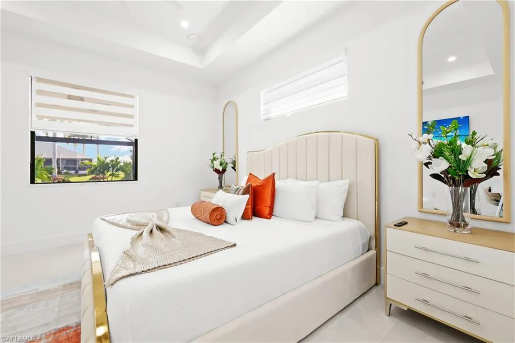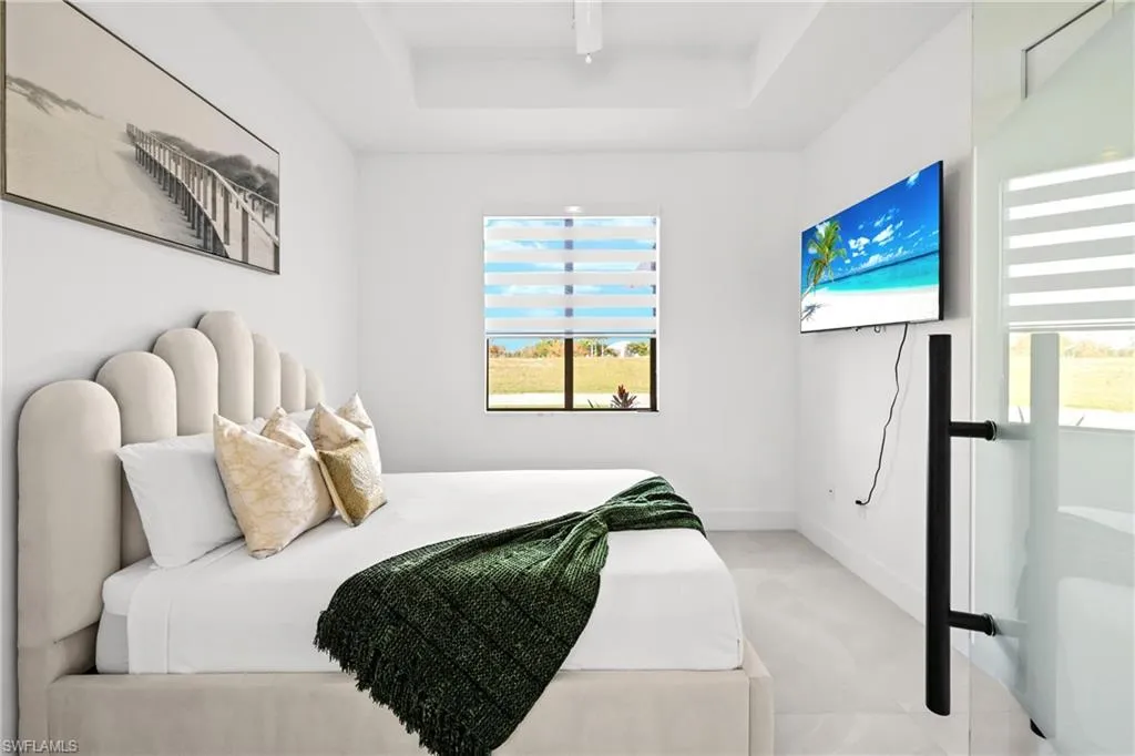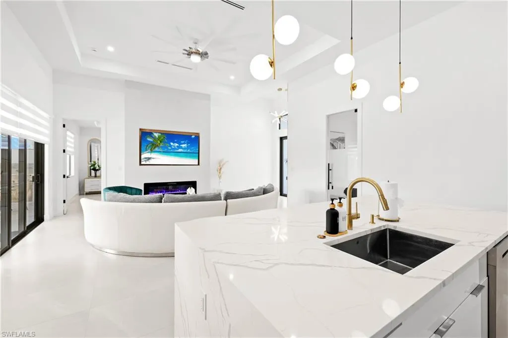 Beautiful Waterfront this spectacular POOL HOME located in the desirable area of SW Cape Coral ,The open concept offers 1931 sq.ft of fabulous living area, tray ceilings, HURRICANE IMPACT DOORS & WINDOWS, custom contemporary cabinetry, quartz countertops, zebra blinds with privacy , . TILE THROUGHOUT! Paver driveway & pool deck. When you view the pictures you will see all the upgrades this new home has to offer . Large paved lanai area , a pool cage has fabulous picture window for unobstructed water views. AMAZING LANDSCAPING! . Spacious family room with feature wall & fireplace. East Exposure for sunsets & afternoon sunlight on the Resort Pool Spa and with a salt system, and sun shelf for sunbathing, BOATERS very close to Matlacha for wet & dry boat storage, boat rentals, restaurants, dining, events. Just enough room to start a family or to retire to with all the extra storage