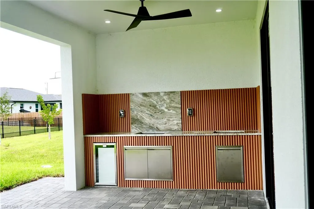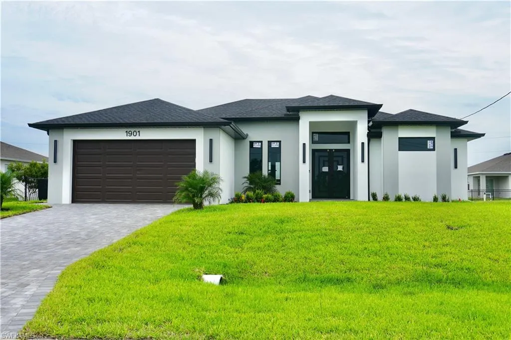 Beautiful New Construction Home in Cape Coral! This residence features 3 bedrooms, 3 bathrooms, plus a den, with a double car garage and a stylish modern outdoor kitchen perfect for entertaining. Inside, enjoy a spacious master bedroom with walk-in closets, a sleek contemporary design, and plenty of natural lighting throughout. The kitchen is highlighted with quartz countertops, while the bathrooms showcase floating cabinets for a modern touch. The home is also equipped with surround sound inside and on the lanai, creating the ideal atmosphere for relaxing or entertaining. With plenty of space to build your dream pool, this property offers both style and functionality in one of Cape Coral’s fast-growing areas.