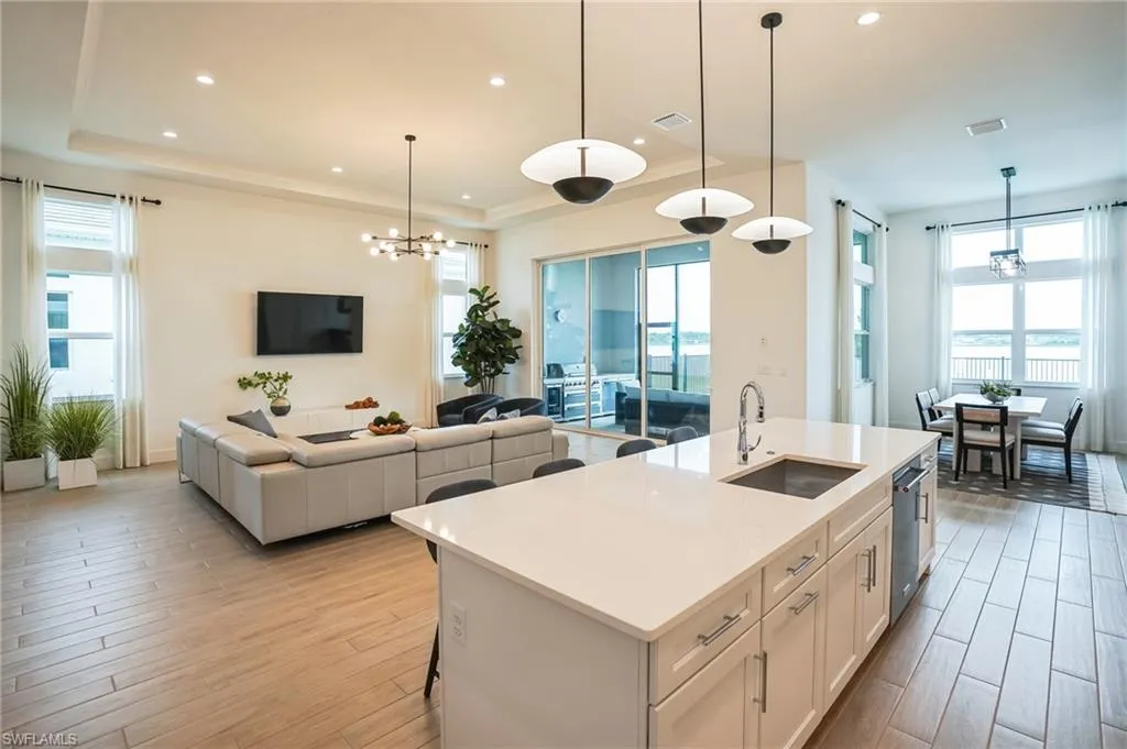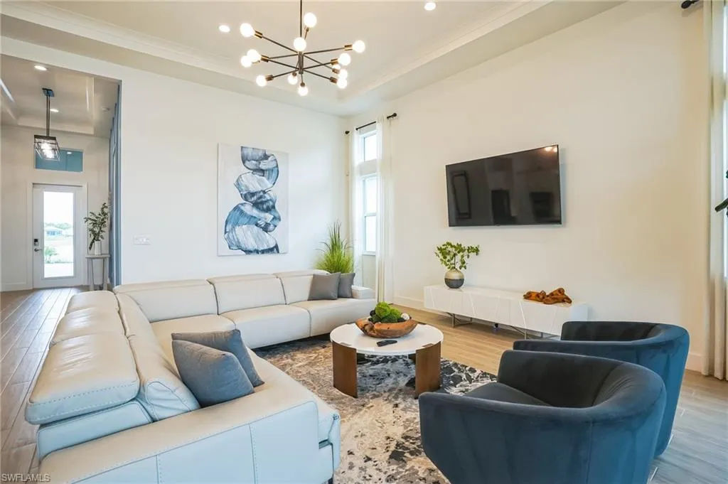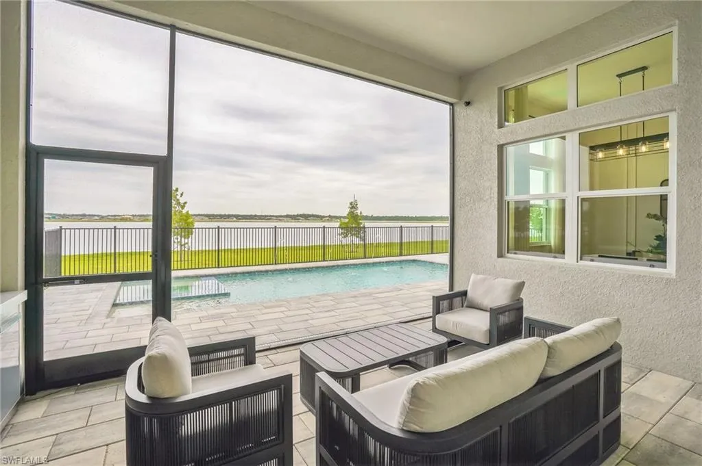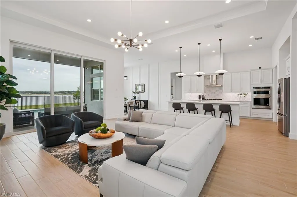 Be the first occupant of this custom, furnished, designer decorated home. Discover the perfect blend of elegance and comfort in this three-bedroom, three-bath home located in the prestigious Seven Shores community on Collier Boulevard. With a private pool and picturesque water views, this residence captures the essence of the Naples lifestyle. The open-concept design welcomes you with soaring ceilings, abundant natural light, and seamless indoor-outdoor flow. The gourmet kitchen is equipped with stainless steel appliances, quartz countertops, custom cabinetry, and a spacious island—ideal for both casual meals and entertaining. The primary suite serves as a private retreat with serene water views, a spa-inspired en-suite bath, and a generous walk-in closet. Two additional bedrooms and baths provide comfort and flexibility for family and guests. Step outside to your screened lanai with built-in pool, where you can swim, lounge, or dine al fresco while overlooking the tranquil water. As a resident of Seven Shores, you’ll also enjoy resort-style amenities including a clubhouse, fitness center, walking trails, and community pool—plus close proximity to Naples’ renowned beaches, golf, shopping, and dining. This property offers the rare combination of waterfront tranquility, private luxury, and vibrant community living and is turnkey with all the necessary accoutrements for day to day living.