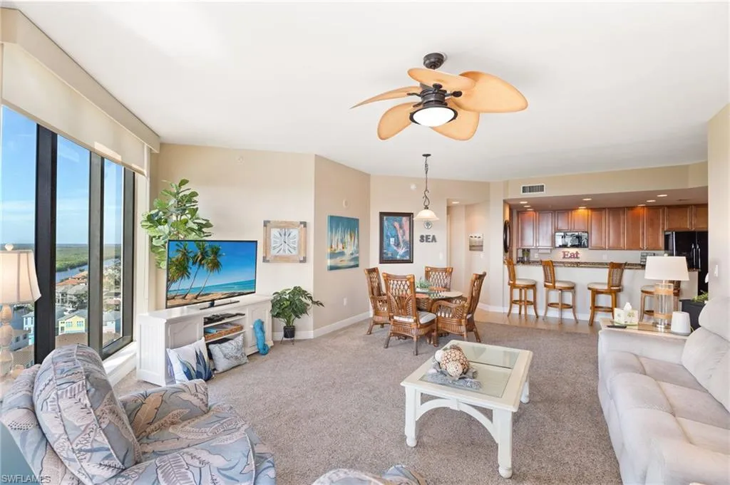 Experience luxury living in this 13th-floor, 3-bedroom split plan condo with breathtaking panoramic views stretching from Tarpon Point to Sanibel. Enjoy stunning sunrises and sunsets from your open floor plan, designed to maximize light, space, and those incredible vistas.