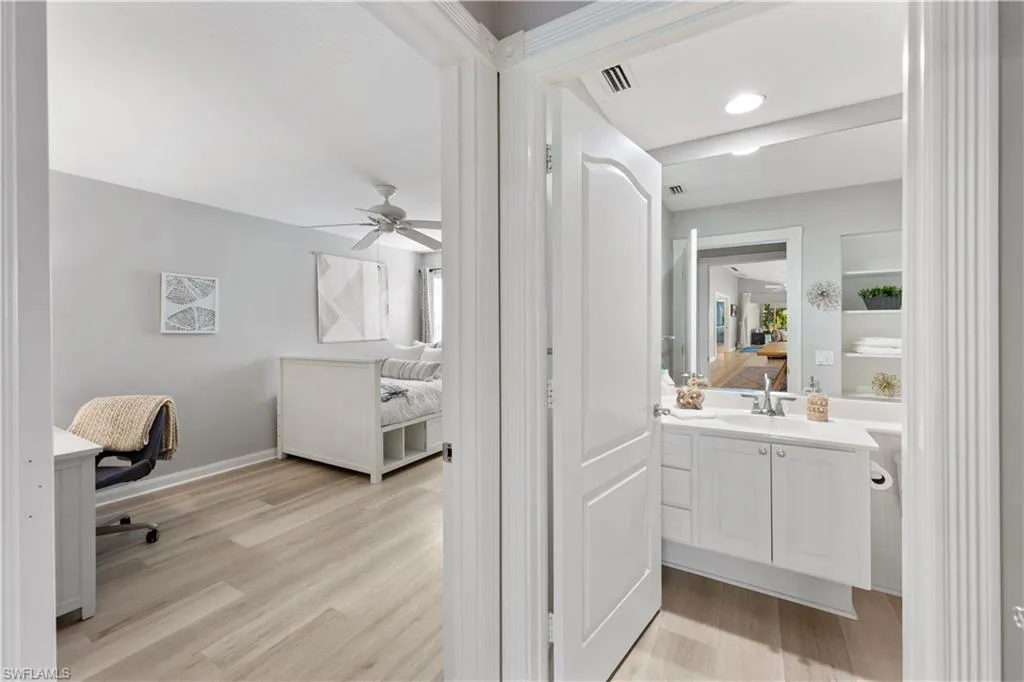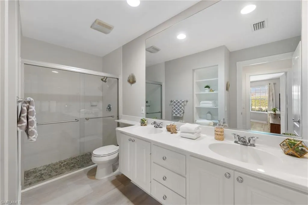 Offered furnished and move-in ready, this elegant 2-bedroom + open den, 2-bath villa in the highly desirable, gated community of Island Walk in Naples invites you to experience refined, low-maintenance living with a resort-style flair. Thoughtfully designed with soaring ceilings, abundant natural light, and a seamless open-concept layout, the home features a timeless white island kitchen that connects effortlessly to the main living and dining areas—perfect for both everyday comfort and easy entertaining. The owner’s suite is a peaceful retreat with two spacious closets and a spa-like ensuite bath featuring a dual vanity and walk-in shower. A split-bedroom design ensures privacy for guests, while the open den area provides a flexible space for reading, relaxing, or casual work. An oversized laundry room with generous cabinetry and counter space enhances daily functionality with style. Step outside to a beautifully landscaped backyard with wide, open views—ideal for morning coffee, evening breezes, or dining al fresco. Beyond the home, Island Walk offers an exceptional lifestyle defined by scenic Venetian-style bridges, peaceful waterways, and an impressive lineup of amenities including a resort-style pool, state-of-the-art fitness center, tennis and pickleball courts, on-site dining, a salon, post office, and even a gas station. With a full-time activities director and countless opportunities for connection, recreation, and relaxation, Island Walk blends vibrant community living with everyday convenience. All this, just minutes from Naples’ world-renowned beaches, golf, dining, and shopping, makes this furnished villa a rare opportunity to enjoy the very best of Southwest Florida. Roof 2019