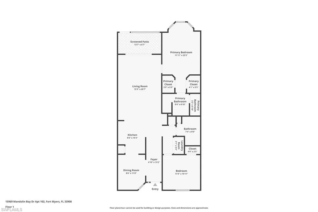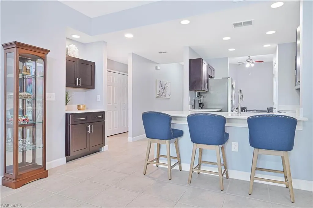 This is the one! 1st Floor, Light & Bright 2 bedroom / 2 bath condo in Mandolin Bay! 1 car garage included & offered TURN-KEY furnished. This condo has been fully renovated with a beautiful kitchen offering quartz counters, stainless appliances and bar area. Featuring all tile throughout, new windows, new sliding patio doors and front door. Relax on your screened in lanai over looking peaceful landscape. The association offers a beautiful clubhouse, community pool/spa and fitness room that was recently renovated as well. LOW HOA fees! No mandatory engineering inspections required! Excellent location just minutes to Fort Myers Beach & Sanibel Island!
