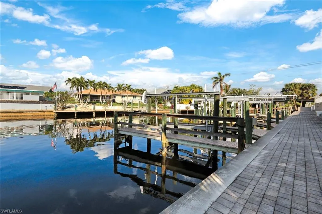 BOAT SLIP & FURNITURE INCLUDED! SMALL, PET FRIENDLY, FINANCIALLY SOUND COMMUNITY! Nestled in a rarely available, small, pet friendly, Gulf-access community, this stunning property offers the perfect blend of luxury, convenience, and serene waterfront living in SW Cape Coral. The freshly painted exterior and BRAND NEW tile roof set the stage for this meticulously maintained community. Step inside and discover a thoughtfully designed layout with HIGH vaulted ceilings, crown molding throughout, and tile flooring in the main living areas, while cozy carpet adds comfort to the bedrooms. The modern kitchen features granite countertops, a breakfast bar, maple cabinets, recessed lighting, and a large walk-in pantry that doubles as a laundry room with extra storage. The spacious living room is perfect for entertaining, while the den with frosted glass doors adds a stylish and functional flex space. Decorative niches throughout the home add unique character and charm. Relax on your screened, tiled balcony overlooking the heated pool and canal, complete with impact sliding doors AND electric shutters for added security and peace of mind. Outdoor enthusiasts will love the boat slip, dock, and captain’s walk, providing boating access to the Gulf of Mexico. The main suite is a spacious private oasis with views of the water, a large walk-in closet with attic access, and a luxurious en-suite bathroom featuring a floor-to-ceiling tiled shower with decorative listello, dual sinks, and a linen closet. Watch manatees and dolphins year-round right outside your back door, making this home a true coastal paradise. You deserve everything that SWFL has to offer: temperate weather year round, boating, kayaking, jet skiing, world class fishing and white sandy beaches at your fingertips!