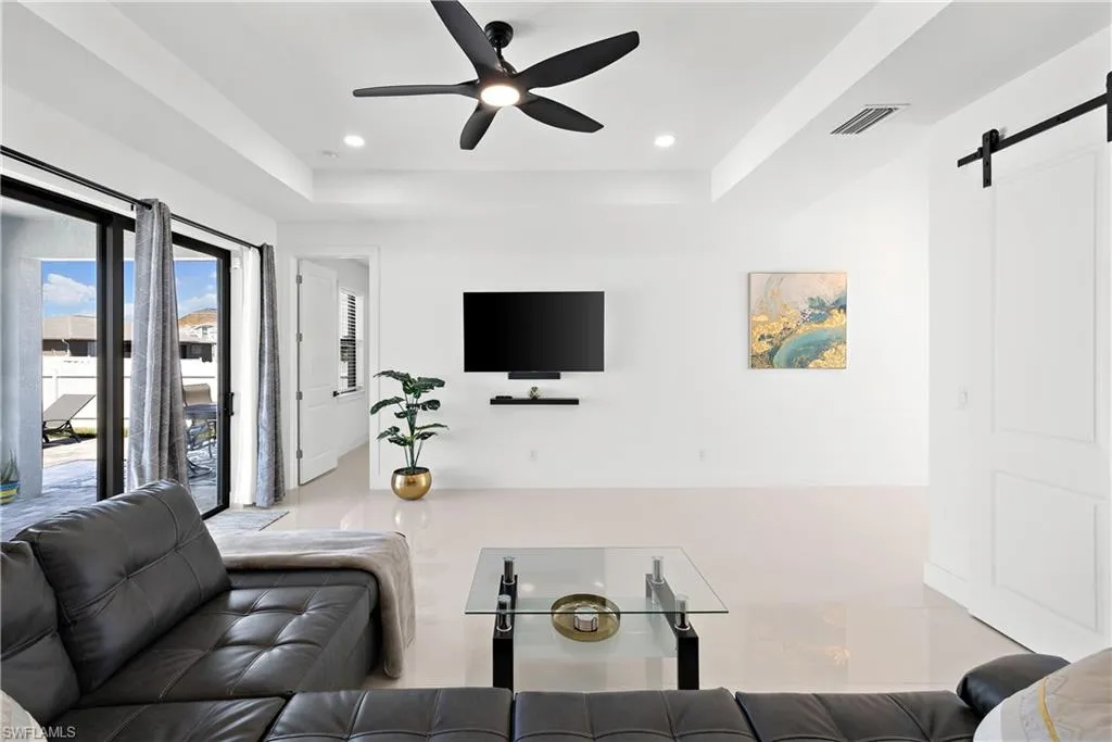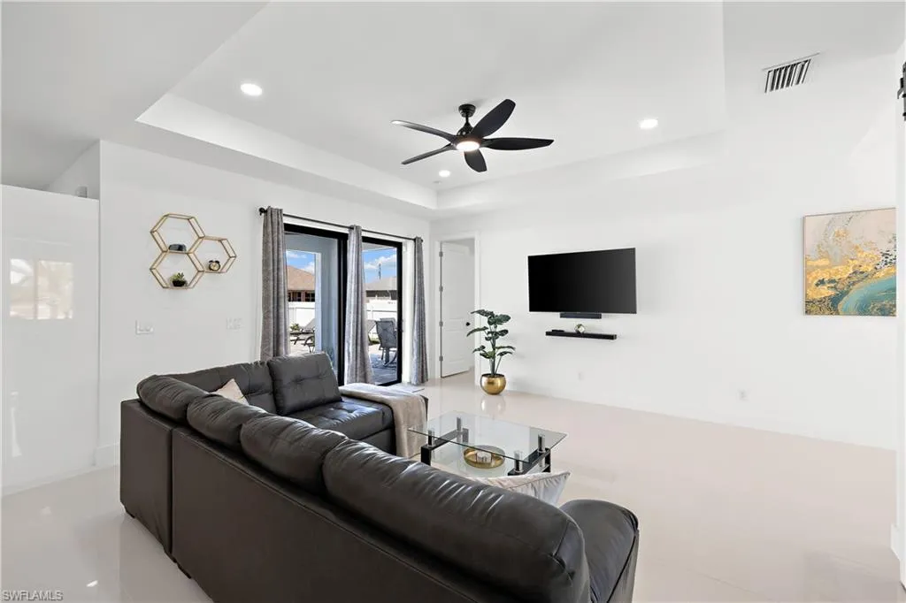 Stunning 3BR+DEN/3BA pool home in Cape Coral, built in 2022, showcasing a modern open-concept ranch design with high-end finishes throughout. Enjoy quartz countertops, stainless steel appliances, an outdoor kitchen, and a split-bedroom floor plan. The spa-like primary suite offers dual sinks, a walk-in shower, and spacious closets. Additional highlights include a fenced backyard, two-car garage, high-impact windows/doors, and beautiful landscaping—all just minutes from shops, dining, and beaches. Don’t miss the opportunity to call it Home!