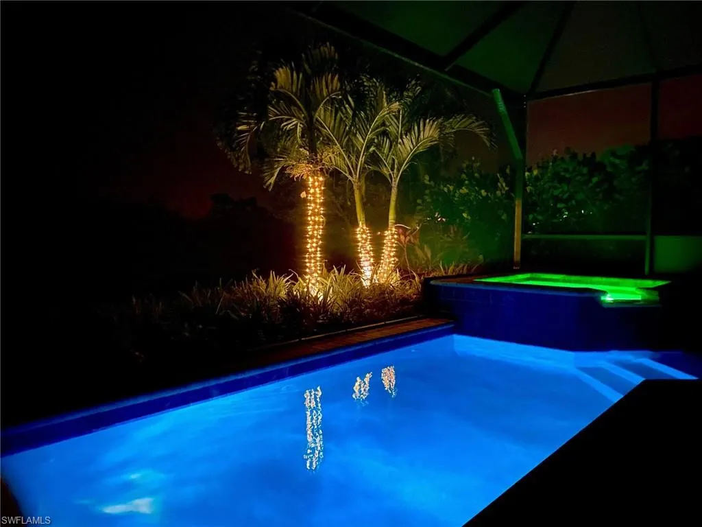 For entertaining, mix a cocktail at the built-in home bar and step out to your private tropical oasis. Relax in the heated saltwater pool and spa while savoring spectacular sunsets across your southwest-facing lanai. Surrounded by lush landscaping, water, and preserve views — plus no-see-um screening — you’ll enjoy unmatched privacy and comfort.