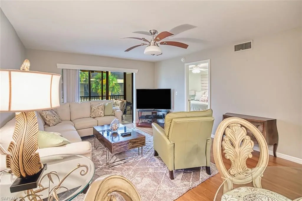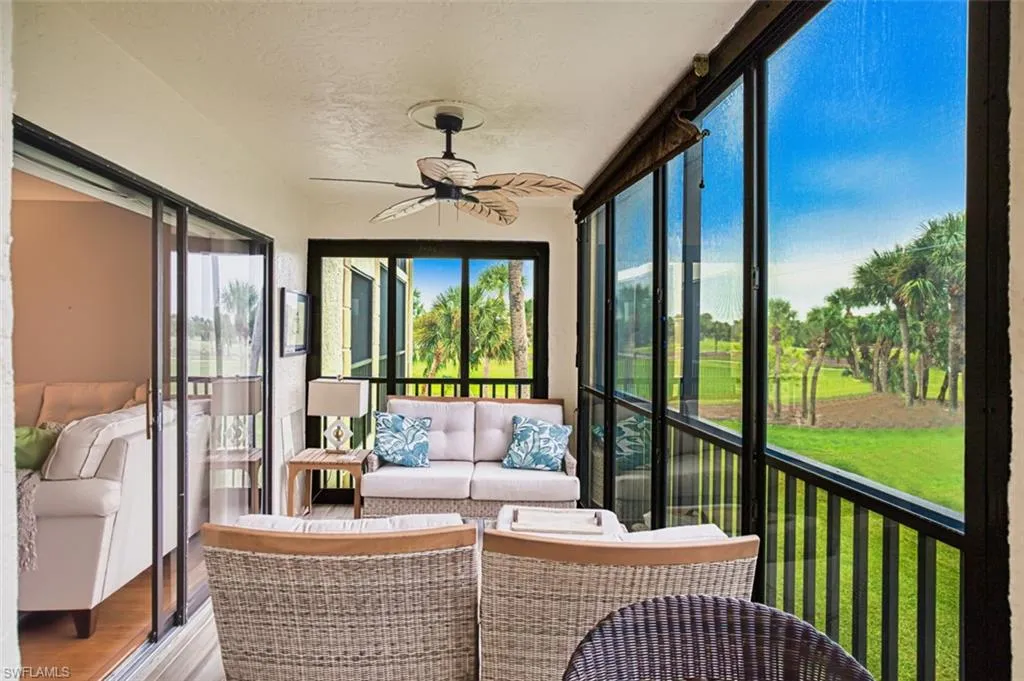 An outstanding condo and club at a great price. SECOND FLOOR 2/2 END/CORNER UNIT WITH GOLF COURSE VIEWS. Location is everything and this has it walking distance to the clubhouse but not on the cart path nice and quiet. The lake and golf course views are spectacular. The unit is updated with bamboo flooring, new master bathroom and impact sliders. Being sold fully furnished by a very motivated seller. Kelly Greens is a private, gated, golf and tennis community located just minutes from the world-famous beaches of Sanibel, Ft. Myers Beach, and Bunche Beach which is about a one-mile bike ride. New clubhouse, excellent tennis courts, amazing par 72 golf course which can challenge any golfer, all new perimeter concrete wall and landscaping. Kelly is looking fantastic! The time to buy is now while prices are still low.