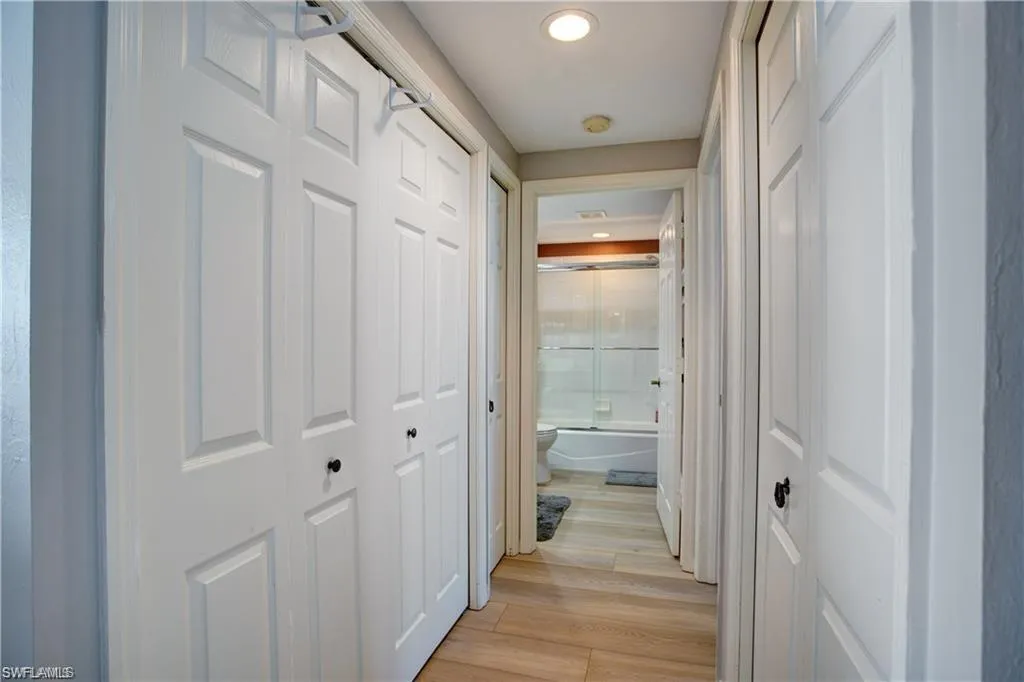~The Guest Bedroom is on the other side of the condo allowing for privacy and next to the Guest Bath with new glass shower doors and toilet. ~The laundry has newer washer/dryer+extra storage. Also included in this purchase is an Under Building Parking Spot #26 and storage closet. The a/c & water heater are located outside of the unit in a separate closet.