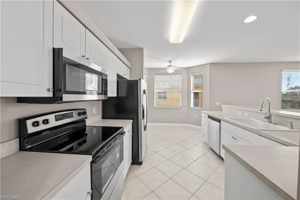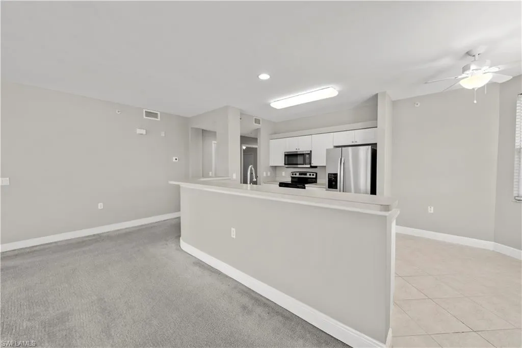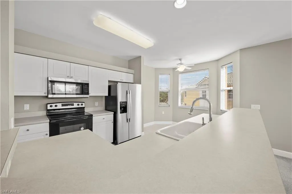 MOTIVATED SELLER! MAKE AN OFFER. Gulf Reflections is a charming and well-equipped community with plenty of appealing amenities. This third-floor condo, accessible by elevator or stairs, offers 3 bedrooms, 2 bathrooms, and a spacious 1,848 sq. ft. More square footage than most 3 bedrooms. Walk-in closets in every bedroom, Bright end unit filled with natural light. The bright kitchen features newer stainless-steel appliances, a breakfast nook with bay windows, and a breakfast bar. The great room opens to a screened lanai overlooking a peaceful lake with a fountain. The master suite includes lanai access, ample closet space, and an en-suite bathroom with dual vanities, a large shower, and a soaking tub. Additional highlights include a full-size washer and dryer in a dedicated laundry room, impact-resistant windows and sliding doors for cost-effective utilities, and reasonable HOA fees. Parking includes two assigned spaces, one with a carport. A large storage closet is conveniently located outside the front door. The freshly painted interior adds to the appeal. Community amenities include a clubhouse with a library, fitness center, lounge with large-screen TVs, and event spaces. Outdoors, enjoy a heated pool and spa near the clubhouse and a secure gated entrance. Seasonal activities are also available. This home combines comfort and functionality with serene lake views and excellent community features, making it perfect for enjoying the Florida lifestyle. Close to beaches, it’s an ideal winter retreat or rental property. No CDD.
