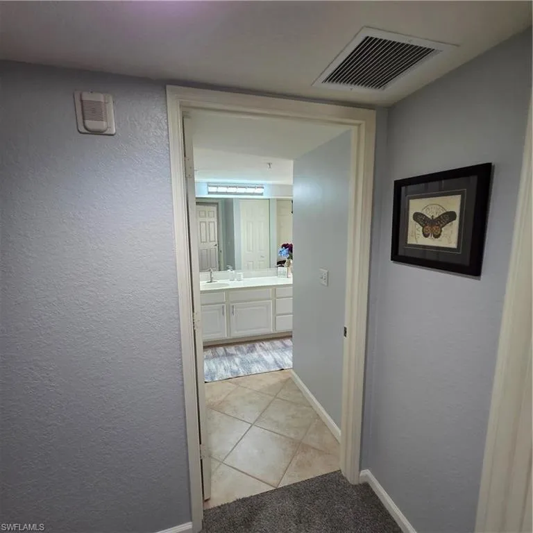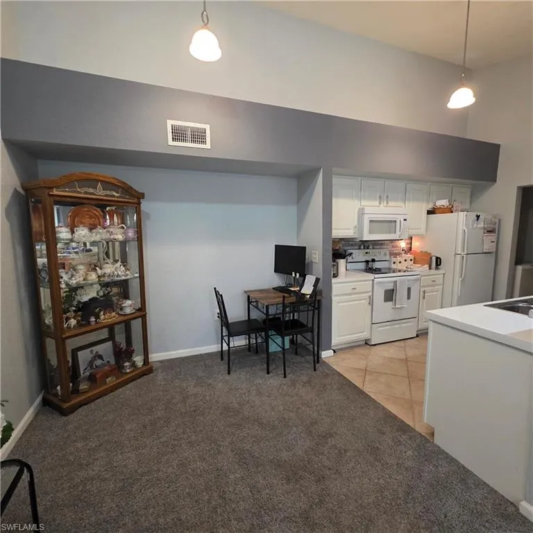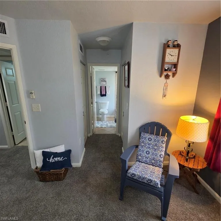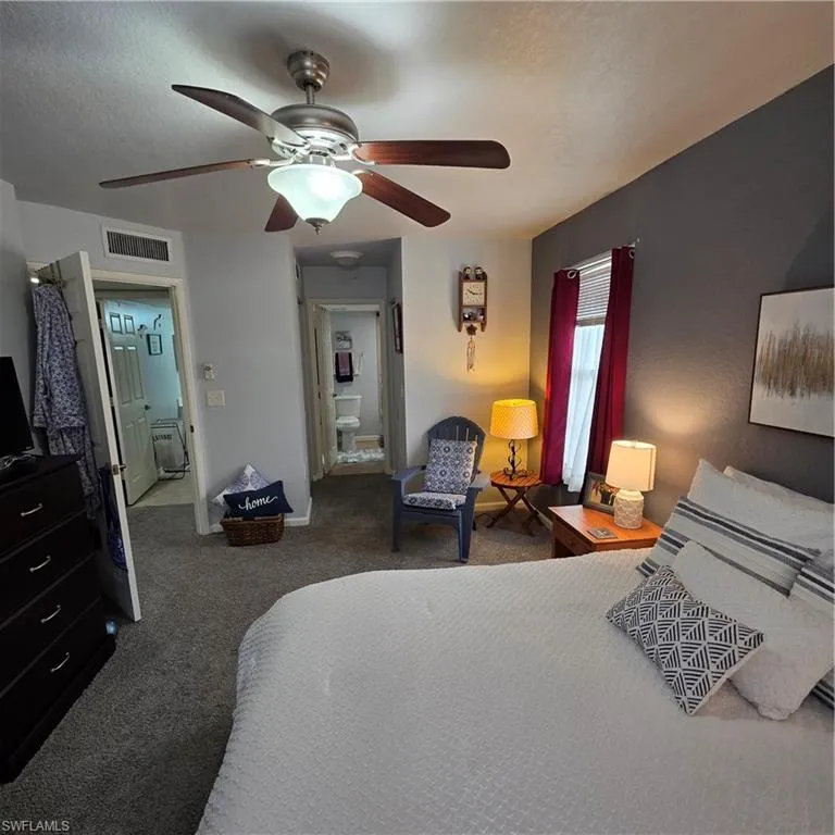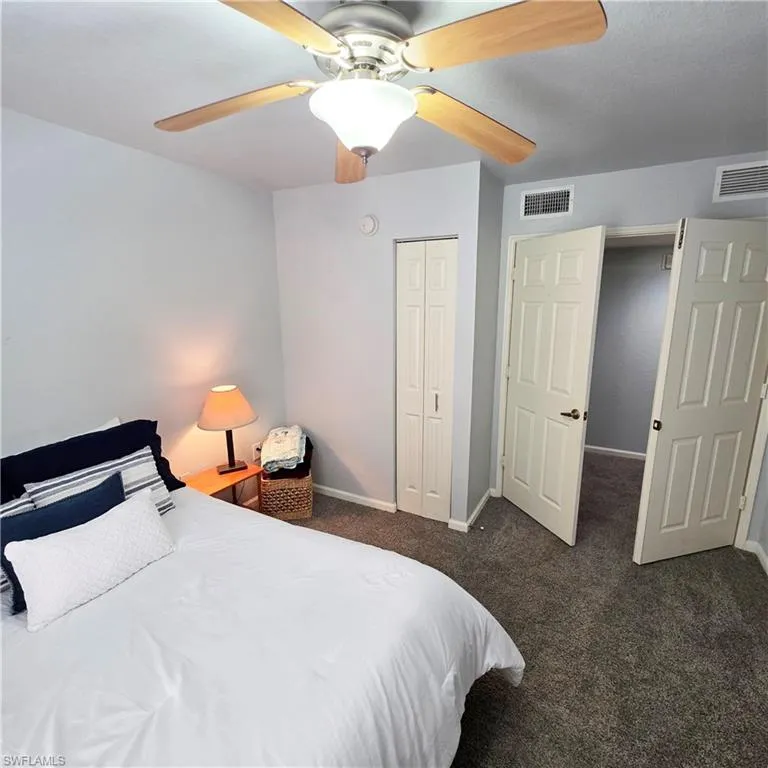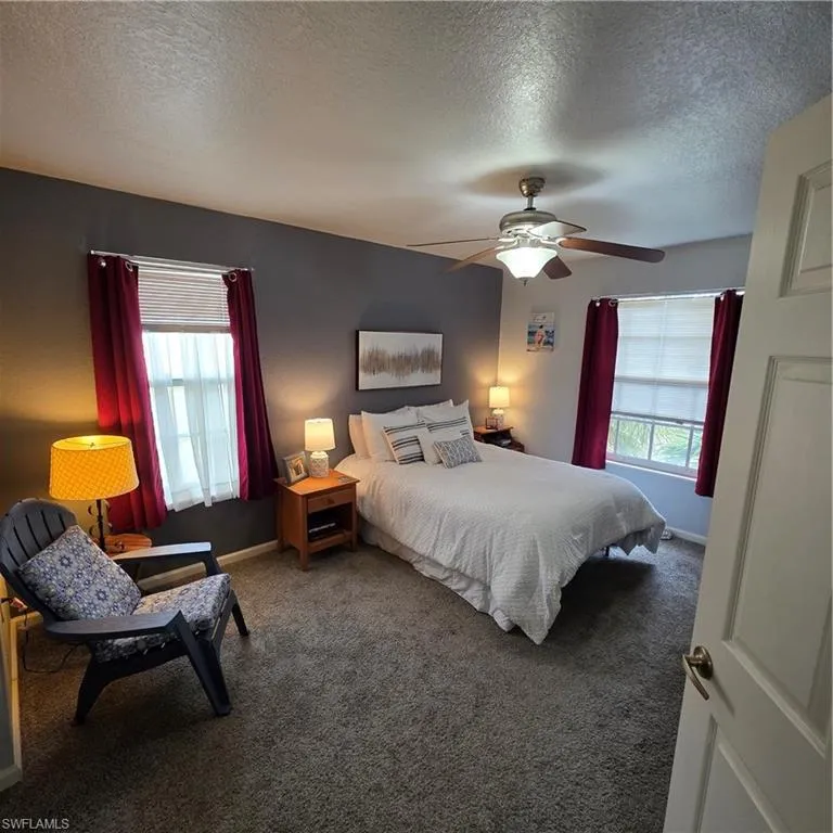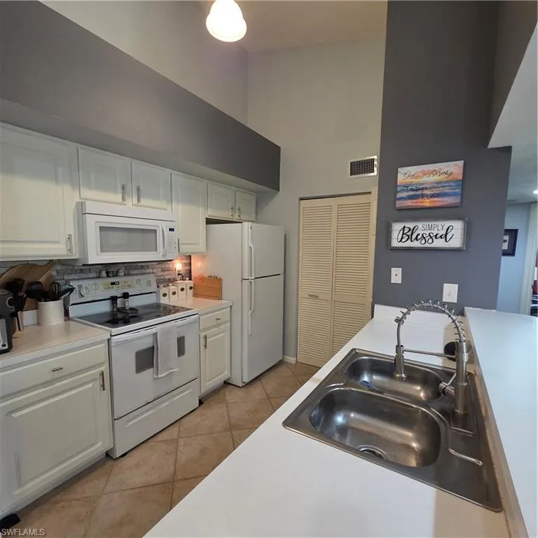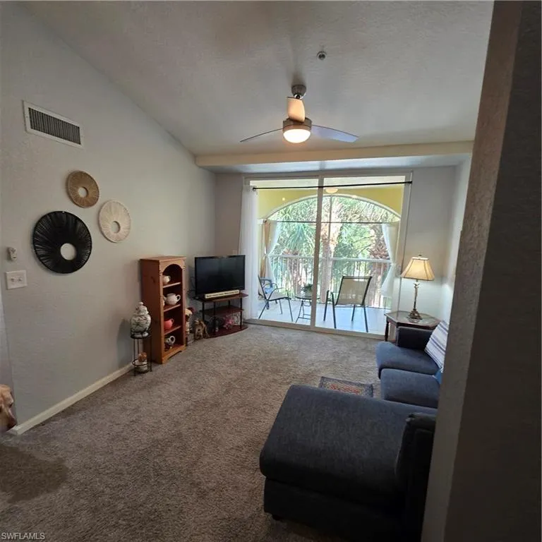 The Residence Condominiums are conveniently located just minutes from I-75, the Cape Coral bridges, downtown Fort Myers, Edison Mall and Bell Tower shopping and dining. The community offers a clubhouse with billiards, an activities room, fitness center and heated pool with sundeck and views of the lake and water display. This cozy two bedroom, one bathroom home features a spacious screened-in balcony, an open concept great room with vaulted ceilings, newer carpet, ceramic tile in the kitchen and bathroom, and full-size 1-year new washer and dryer. The bathroom has a relaxing garden tub with window and two entrances from the hallway or the primary bedroom which has two closets. Additionally, the building itself has a 2-years new roof.
