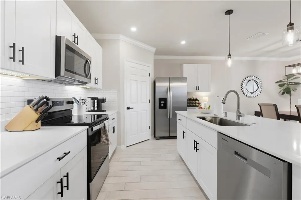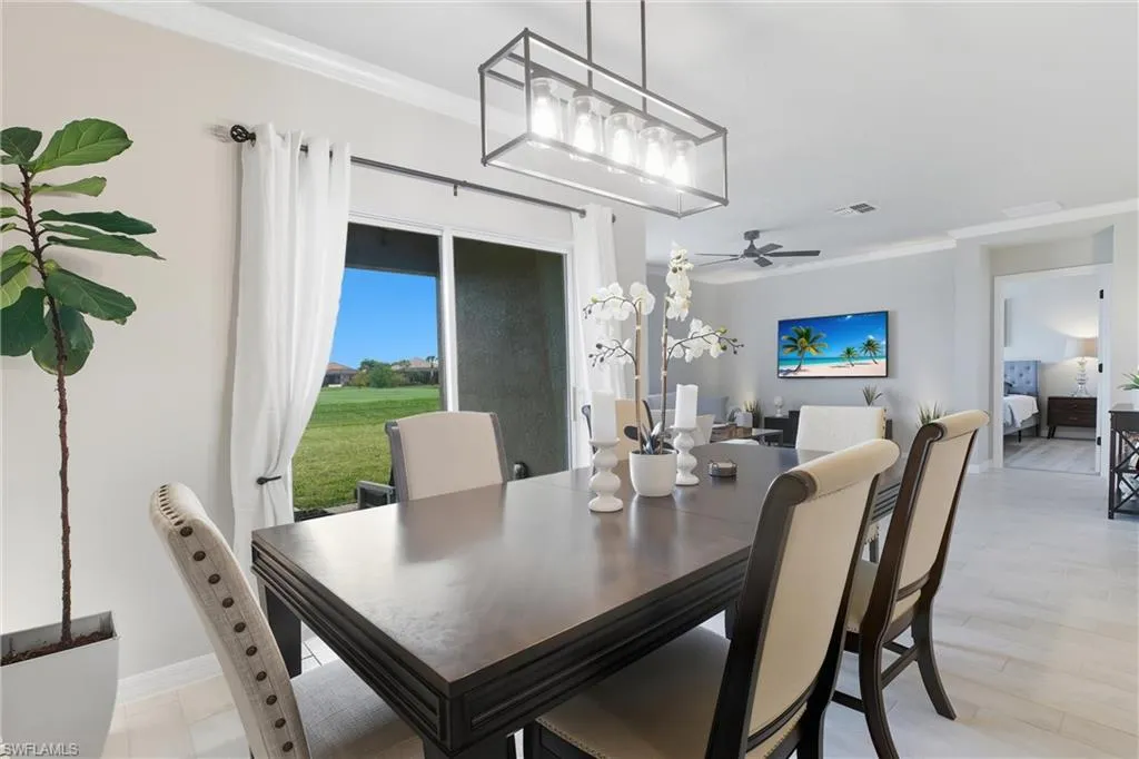 WOW. Affordable golf course living at its’ best with no membership required!!! Must see this stunning 4 bedroom, 2 bath home in the highly desirable community of Magnolia Landing where coastal charm meets modern comfort. Backing onto the 10th hole tee box, this home sparkles with over $25,000 in upgrades and truly shows like a model home. Inside you will find a bright open layout featuring crown molding, upgraded fixtures, plank tile, and luxury vinyl flooring. The gourmet kitchen shines with granite countertops, tile backsplash, stainless steel appliances, under-cabinet lighting, and plenty of storage. A stained-glass front door allows for ample lighting in the home, while the finished garage floor and the “smart home” blend convenience with style. The spacious bedrooms and spa-like bathrooms complete the interior, while the outdoor living is all about enjoying those sunny Florida views as you enjoy your favorite beverage from your lanai. Magnolia Landing offers a lifestyle that feels like you’re on vacation every day. Enjoy access to 2 sparkling pools, a fitness center, 8 pickleball courts, bocce, shuffleboard or gather with neighbors at one of the many social events. Don’t feel like cooking? Head over to the golf course clubhouse for dinner, drinks, and socializing. Beyond the security guarded gate, you’ll love the easy access to I-75, shopping, schools, restaurants, and many parks. Downtown Fort Myers is just minutes away with vibrant dining, entertainment, and waterfront charm. With two airports within 30 minutes from your home, travel to your next adventure is a breeze. The Florida’s resort lifestyle is right at your doorstep with this move-in ready home so schedule your showing today to enjoy all the fun!