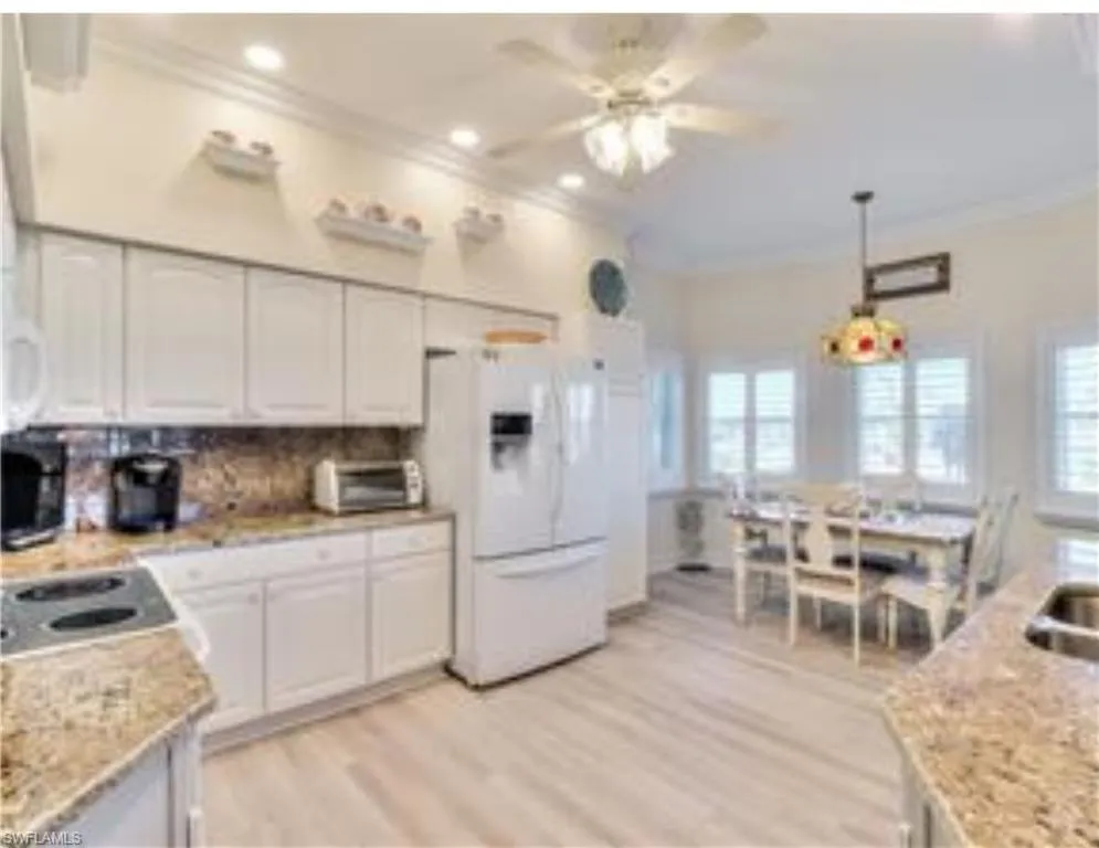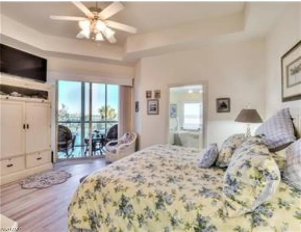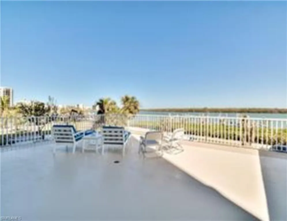 Welcome to Waterside at Bay Beach, one of the premier gated communities on Fort Myers Beach. This beautifully updated 3 bedroom 3 bath waterfront residence combines modern finishes, rare features, and resort-style amenities for the ideal coastal lifestyle. This spacious condo includes a highly desirable under-building enclosed garage as well as 3 full bathrooms—a feature not found in most 3 bedroom units. Inside, you’ll find thoughtful upgrades throughout, including CoreTech flooring, wide baseboards, designer light fixtures and ceiling fans, a renovated primary ensuite bath (2020), a 2017 water heater, and a 2019 A/C system for added comfort and peace of mind. The renovated kitchen showcases elegant granite counters and backsplash, updated lighting, a newer KitchenAid dishwasher, a Samsung refrigerator (2018), and an eat-in island with adjacent dining area, perfect for everyday living or entertaining. The double door entry features a custom artist-designed foyer, while the front bedroom and kitchen include new window shutters and all-new shades throughout. One of the rare highlights of this residence is its dual outdoor living space: a screened lanai with travertine flooring for year-round enjoyment, and an expansive open deck offering space for lounge chairs and outdoor dining furniture. This combination of indoor-outdoor living is unique within Waterside and provides the perfect setting for relaxing with tranquil bay views. Community amenities include a resort-style pool and spa, fitness center, sauna, tennis courts, fishing pier, and jogging/walking paths. The gated entrance with 24-hour guard offers added security. For boating enthusiasts, Gulf access is just minutes away from the on-site boat slips, available for lease or for additional purchase. Waterside at Bay Beach is located on the quiet south end of Fort Myers Beach, providing easy access on and off the island while keeping you close to the Gulf of Mexico, sandy beaches, local restaurants, and shopping. This is your opportunity to own a move-in-ready waterfront condo with modern upgrades, rare outdoor living spaces, and one of the most desirable locations on the island.