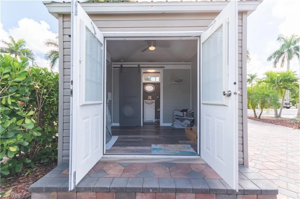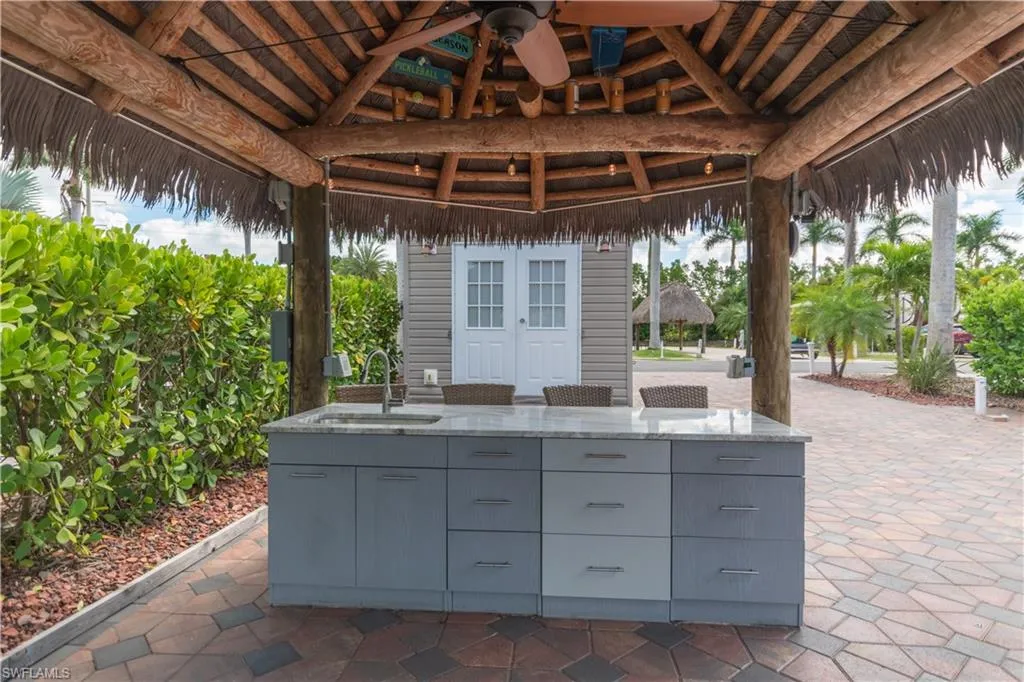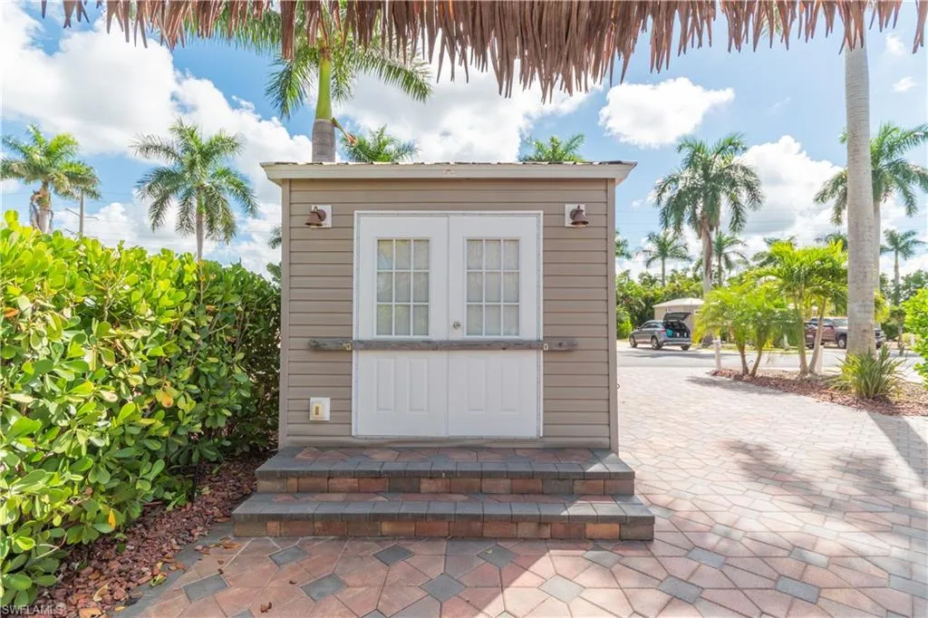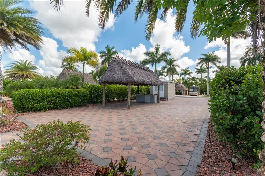 Lakefront Class A only RV Lot with Tiki, Outdoor Kitchen & Finished Shed! Welcome to Lot 316, a pavestone lot perfectly situated on the lake, offering gorgeous water views and vibrant sunsets. This thoughtfully designed property combines comfort, style, and functionality to create the ideal Florida retreat. Enjoy the best of outdoor living under your 10’ x 20’ tiki hut, complete with waterproof sliding curtains that provide shade and protection year-round. Even on cooler evenings, the 220 infrared heater ensures your space stays cozy and inviting.