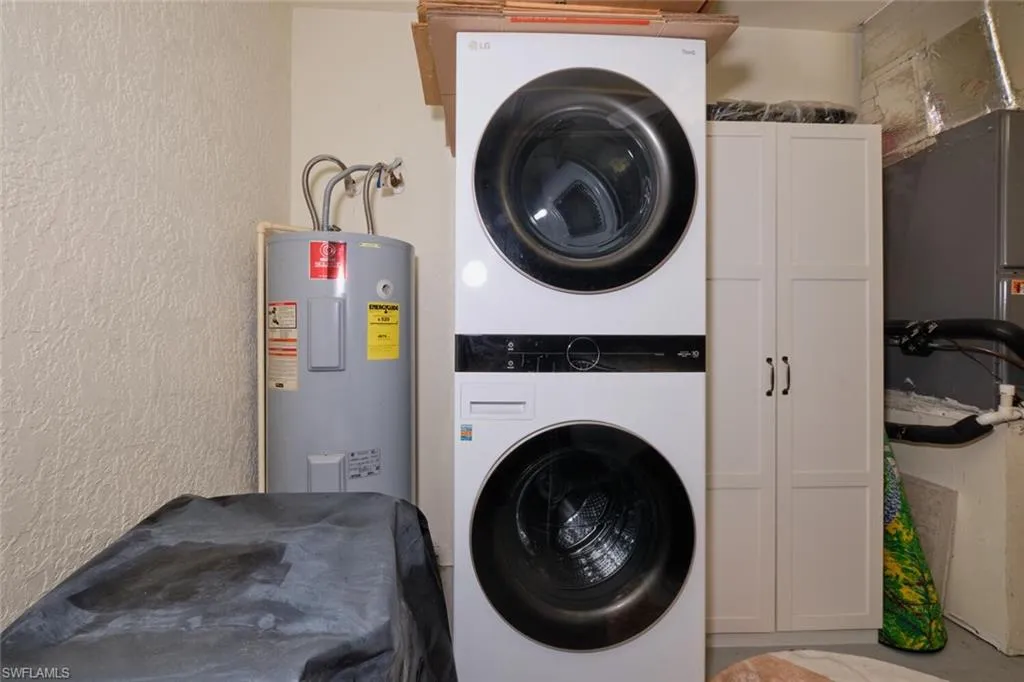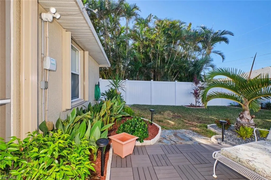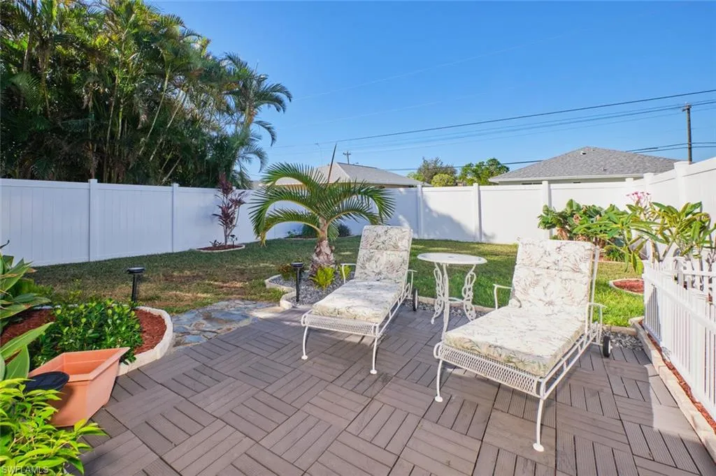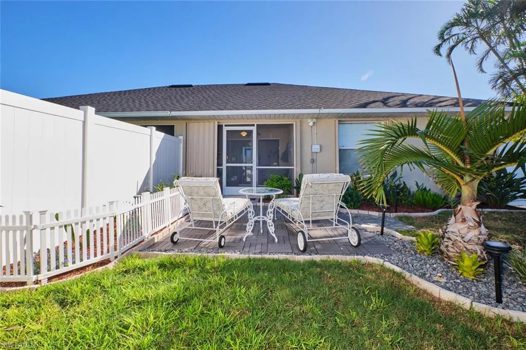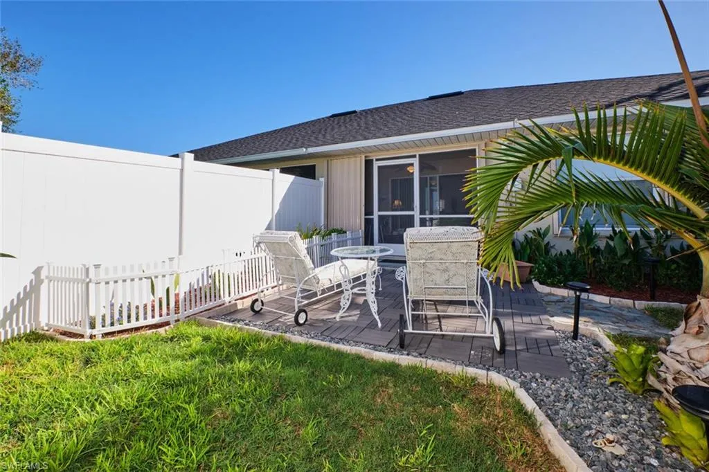 This is a well maintained/meticulously kept attached villa with NO HOA. With a freshly painted exterior (including lanai) , this home has 2 bedrooms and 2 full baths, a 1 car garage, lanai, patio and fenced backyard. It is a perfect retreat/home for retirees, couples, single persons, or as an investment rental. Although in a flood zone, this property has NOT flooded and is protected from hurricane damage with a NEW ROOF 2023, HURRICANE SHUTTERS 2024, IMPACT GARAGE DOOR 2025, IMPACT FRONT AND SIDE DOORS 2024. For any extended periods away, you’ll have peace of mind with the WIFI SECURITY CAMERAS 2025. The laundry is located in the garage with the LG WASHTOWER 2023, HWH 2021, a nice storage area with cabinets and a work area for that special hobby. A PORTABLE GENERATOR is included and is stored in the garage where it has a separate electrical panel for ease in converting the power. The kitchen has a NEW DISHWASHER AND GARBAGE DISPOSAL 2024 and granite countertops. The home is tiled throughout, offers lots of natural light and has ceiling fans in the great room, bedrooms lanai and garage. You can relax and soak up some rays on the adorable composite tile patio area surrounded by tasteful landscaping and enclosed by a WHITE VINYL PRIVACY FENCE 2022. There is a slate walkway to the backyard and the entire property has a sprinkler system. The lawn has been fertilized and treated regularly by a lawn maintenance company. There’s plenty of room for the dog and/or kids to play as well and entertaining. This property has an assumable A loan, a survey for cost savings and offers a home warranty and ALL ASSESSMENTS ARE PAID!