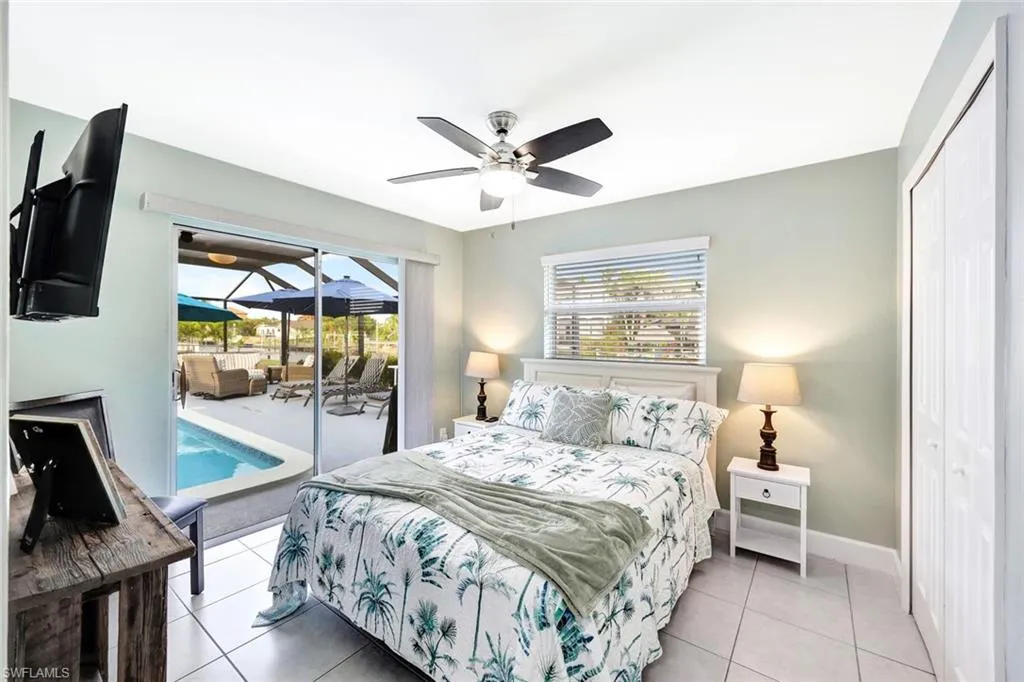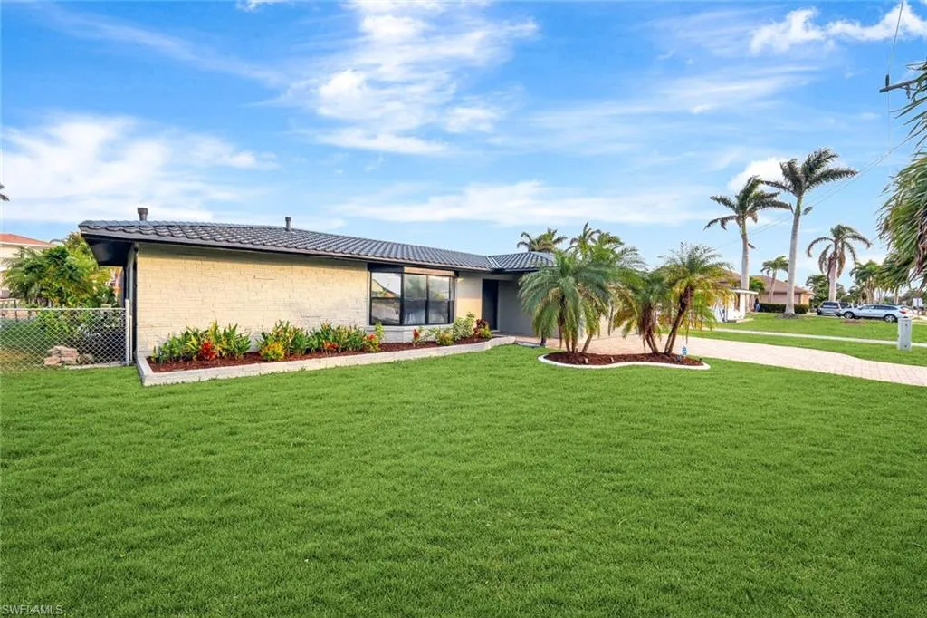 SAILBOAT ACCESS POOL HOME LOCATED ON THE PELICAN FINGERS! Discover waterfront luxury in this stunning 4-bedroom, 3-bathroom sailboat-access pool home, perfectly situated in the prestigious Pelican Blvd area of South Cape Coral. A newer metal roof (2023) and professional landscaping with a pavered driveway (2020) add to the home’s curb appeal. The entire exterior was stripped and repainted in 2024, while the interior was also freshly repainted (2024). Inside, the straight-stacked tile flooring flows seamlessly throughout, leading to a bright front living room with a stylish brick and wood accent ledge and a coat closet at the entryway. The kitchen is a chef’s dream, featuring ceiling-height white shaker cabinets with sleek silver pulls, a white subway tile backsplash, granite countertops, stainless steel appliances (2022), and a pass-through window with water views, perfect for entertaining. The primary suite features private lanai access, a spacious ensuite with dual sinks, and a fully tiled walk-in shower. The fourth bedroom also has private lanai access, overlooking the pool and water, making it ideal for guests or a home office. A dedicated pool bathroom includes a floor-to-ceiling tiled shower. The pool was recoated in 2022 and is heated, perfect for year-round enjoyment. The backyard is fully fenced and now features new sprinkler system (2024) to keep the landscaping lush. Additional upgrades include new lanai (2023), garage door (2022), water heater (2024), and washer and dryer (2024). For boating enthusiasts, the property includes a private dock, boat slip, and a 13,500 lb boat lift that needs to be permitted and installed (supplies are onsite). The pavered walkway leads from the home to the dock, making waterfront access effortless. This home is not just a property; it’s a lifestyle. This location offers premium boating access and convenient access to shopping, dining and entertainment as its just a short boat ride to Tarpon Point! Be sure to check out nearby Rotary Park for the stunning Butterfly Garden, Children’s playground, Dog Park, mangrove boardwalk and more – all within walking distance! You deserve everything that SWFL has to offer: temperate weather year round, boating, kayaking, jet skiing, world class fishing and white sandy beaches at your fingertips!