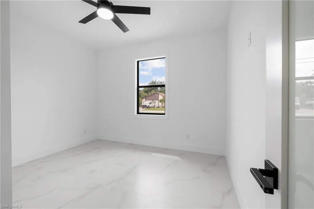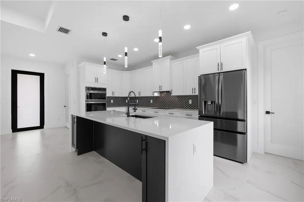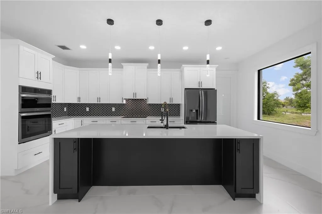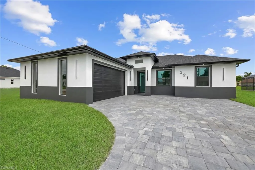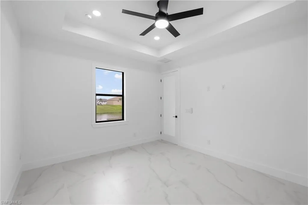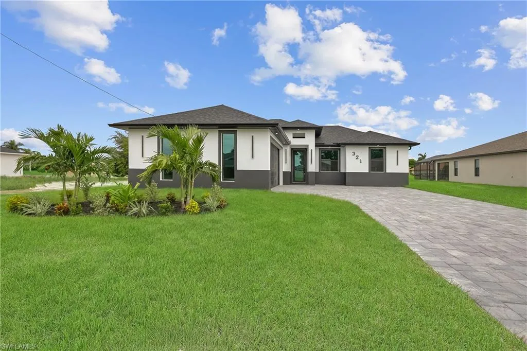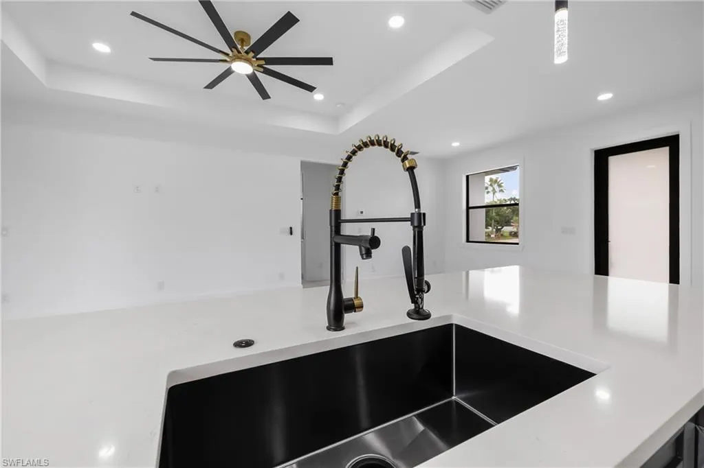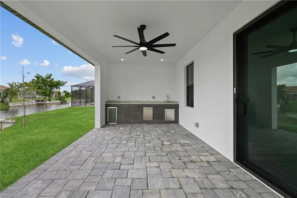 Welcome to this stunning waterfront home in beautiful Cape Coral! With all ASSESSMENTS PAID and NO FLOOD ZONE, this move-in-ready property offers peace of mind and convenience in one of the most desirable areas of town. Nestled in a quiet, tranquil neighborhood, the home is just minutes from Sun Splash Waterpark, Bowling Alley, grocery stores, restaurants, and shopping centers, making everyday life both fun and easy. This residence blends modern luxury with affordability, turning dreams into reality with top-quality finishes like door handles that light up in the dark that ensure both style and long-lasting durability. The thoughtful color palette complements any decor style, giving you the perfect canvas to make it your own. The spacious kitchen is ideal for entertaining, featuring black stainless steel appliances, glass doors, and not only custom made cabinets but also custom made cabinet closets that offer a sleek, sophisticated look with plenty of storage space. Large windows provide beautiful views bringing natural light and charm into every gathering. The tiled garage adds even more versatility, this space is ready to be transformed into a man cave, home gym, or kids’ play area to suit your lifestyle. Outdoors kitchen is a plus to enjoy Floridian lifestyle, with room for a pool and the ability to enjoy water sports like fishing, kayaking etc. Home Warranty included. Don’t miss this rare opportunity to own a beautifully upgraded waterfront home in an unbeatable location!