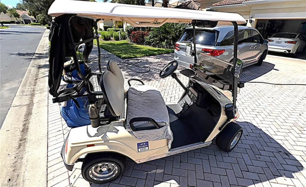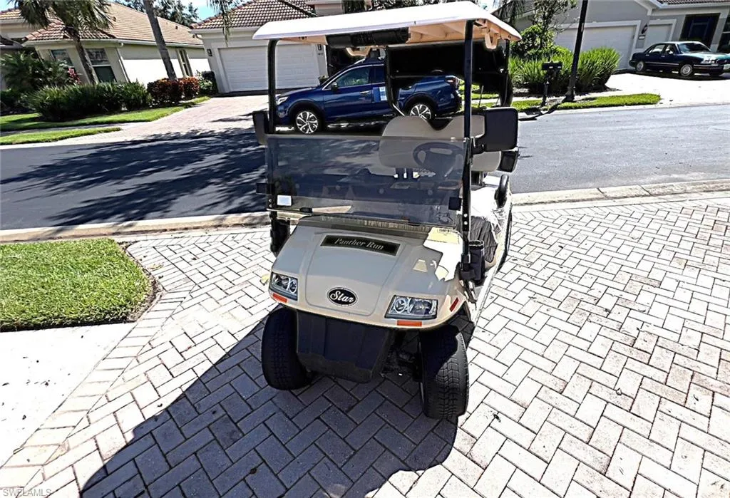 Panther Run Golf Course Club Membership IS INCLUDED!! Seller is also INCLUDING 2 GOLF CARTS (package deal). Home has the most PREMIER GOLF COURSE VIEWS – NOW Featuring this fully FURNISHED & Stylish 2496sf Three (3) BEDROOM plus DEN/Office, 3 Full Bathrooms – ESTATE Series “DUNWOODY TRAIL” Model— It is located on the 2nd Fairway which boasts Breathtaking WESTERN EXPOSURE SUNSETS. Includes GOURMET KITCHEN w/spacious CENTER ISLAND, DOUBLE OVEN WALL UNIT, UPGRADED APPLIANCES, and LOTS of Cabinet Space. SCREENED-IN LANAI and a Lush Yard w/ Mature Landscaping; Plenty of Room for a POOL. Hurricane Roll Down Shades on Lanai & Front Door Plus ACCORDIAN STYLED SHUTTERS on ALL Windows. Master Bathroom has a luxurious Tub, Dual Vanities and a Separate Spacious Walk-in Shower. The EXTENDED 3 Car GARAGE provides that extra needed room for the included 2023 EVOLUTION Lithium Golf Cart, PLUS another smaller Standard Golf Cart & 4 EXTRA Garage Refrigerators. Golf Course Dining is close by at the Rusty Putter Restaurant. You will also enjoy the DEL WEBB RESORT-STYLE POOL and State-of-the-Art FITNESS CENTER PLUS 2 Social Clubhouses. Additional amenities include Pickleball, Tennis, Bocce, Billiards—even a GOLF SIMULATOR! Welcome to one of Southwest Florida’s most Active Lifestyle 55+ Communities.