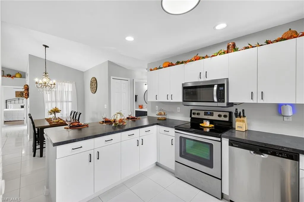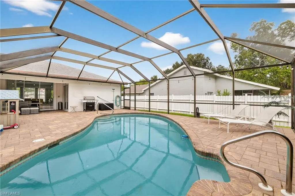 Updated Pool Home on Nearly ¼ Acre – No HOA! This beautifully updated 3 bedroom, 2 bath pool home in Bayshore Estates checks every box for today’s family or first-time buyer, combining upgrades, space, and peace of mind with the rare reassurance of zero hurricane damage through the last three storms. Set on nearly a ¼-acre lot with lush tropical palms, preserve-like privacy, and a family-friendly neighborhood feel, the home offers 1,564 sq. ft. of living spacewith soaring ceilings, an open flow, and a split-bedroom design that makes everyday living both comfortable and functional. The huge primary suite is a true retreat with his-and-hers closets, private entry to the pool, and a fully remodeled bathroom, while the second bathroom is also beautifully updated to match. The kitchen and living areas are equally impressive with brand-new stainless steel appliances, a newer washer/dryer, and new flooring in all bedrooms. Major systems have been taken care of so you can move in without worry: all-new plumbing, new electric panel, and a 2024 water heater provide lasting value and peace of mind. Step outside and the Florida lifestyle comes alive with your own private pool, expansive screened lanai, and a backyard perfect for entertaining, pets, or play in a mostly fenced yard with a 14×8 storage shed for tools, hobbies, or toys. Best of all, there’s no HOA, so you have the freedom to truly enjoy your property your way. And while the setting feels private, you’re just 1 minute from Publix, 5 minutes to the brand-new Aldi’s, and close to gas stations, parks, and walking trails. Commuting is easy with quick access to both US-41 and I-75, putting you just 12 minutes from Downtown Fort Myers as well 25 minutes from both RSW Airport or Punta Gorda Airport. If you’ve been searching for the perfect blend of updates, privacy, family-friendly living, and a great location with proven storm safety, this move-in ready home is the one—schedule your showing today before this hidden gem is gone!