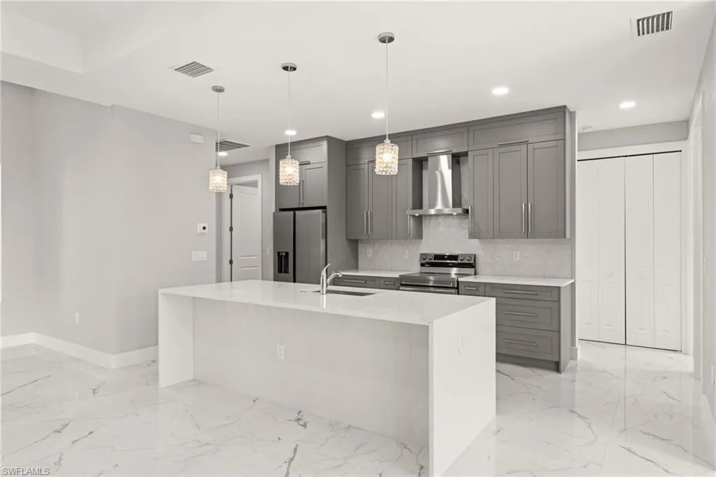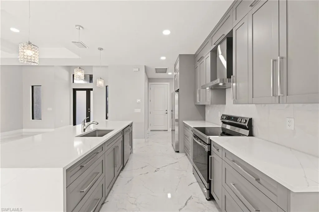 This open floorplan is very popular, offering plenty of entertainment space and convenience. There is beautiful porcelain tile flooring spread throughout the entire home. Love swimming? You’ll love this pool (13×26) in the large enclosed lanai with beautiful pavers and a large soaking area. There is an outdoor grill station with a small fridge, you’ll want to spend all of your free time outside. This home has hurricane impact windows and doors and has city water and sewer, all assessments are paid. Conveniently located…a short drive, paddle or walk to The Shops at Surfside. Schedule a tour today, this home is 100% completed and waiting for its first owner. There no HOA’s and no lease restrictions.
