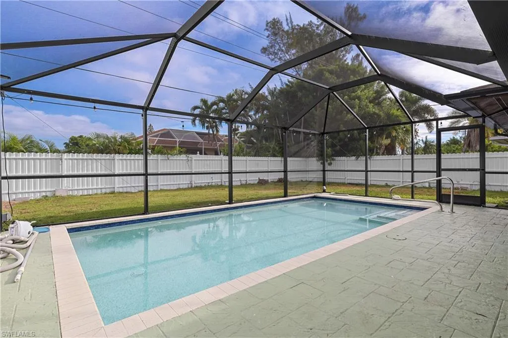 Location, location, location! Welcome to this beautifully updated 3-bedroom, 2-bath home in the heart of SW Cape Coral. Situated on a spacious corner lot with a circular driveway, this property offers both comfort and convenience. Inside, you’ll find an open floor plan that flows seamlessly for everyday living and entertaining. Step outside to the expansive screened-in lanai and pool area, perfect for gatherings and enjoying the Florida lifestyle. Recent upgrades include new plumbing (2022), roof (2023), pool and screened enclosure (2023), and fence (2024), giving you peace of mind for years to come. This home also comes with the added bonus of all assessments paid. Ideally located less than 30 minutes to Ft. Myers Beach and under 4 miles to the Cape Coral Bridge, you’ll also be just minutes from vibrant Downtown Cape Coral with endless shopping, dining, and entertainment options. Embrace the best of sunny Southwest Florida living in your own private oasis!