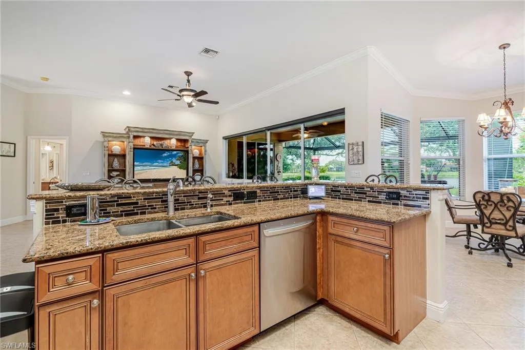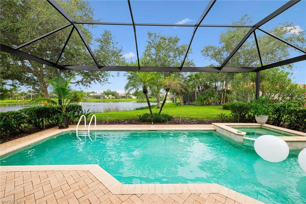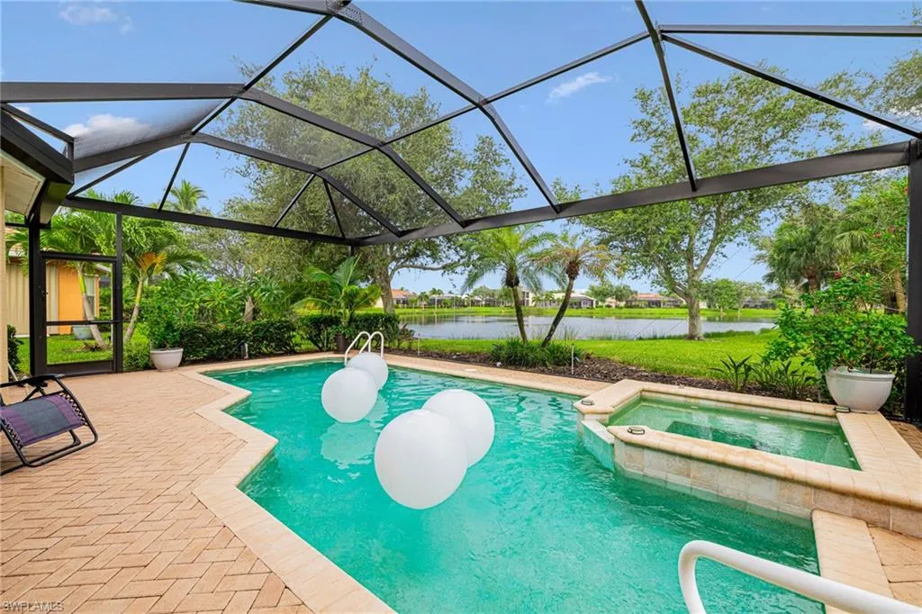 The open floor plan offers a spacious and light-filled living area, ideal for both entertaining and everyday living. Step outside to a private screened-in pool area featuring long, uninterrupted views of the lake through a seamless picture screen—truly a backyard retreat.