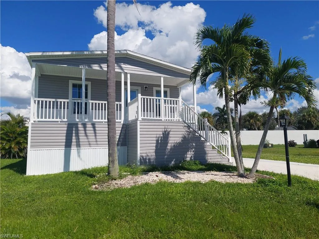 Newly constructed home in Plantation Estates just minutes from the Sanibel Island causeway and Fort Myers Beach! This three bedroom, two bathroom home is ready for it’s first owner with new stainless steel kitchen appliances, washer and dryer with separate utility room. The home has crown molding, a farmhouse style, wood chair rail and barn door entry pantry. Open air porch big enough for entertaining friends and enjoying the cooler evenings in the Florida winter time. Plantation Estates is a Co-Op community for 55 and older with park-like setting with amenities including new Clubhouse and Pool renovations to be completed in early 2026, picnic area and 4 Shuffleboard courts. The low monthly fee of $86 includes trash removal, water, sewer and lawncare. South Fort Myers is hot spot for entertainment, restaurants, shopping and beautiful sandy white beaches. Whether it’s your forever home or a winter retreat, don’t miss your opportunity to own a piece this coastal living community!