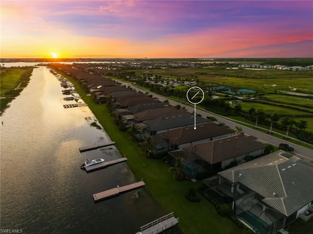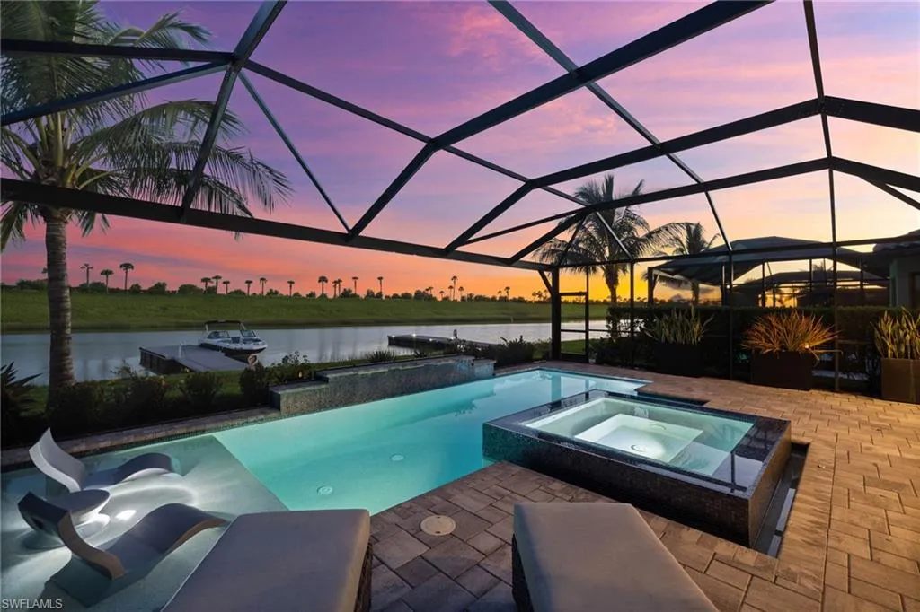 Welcome to Esplanade Lake Club, the Areas newest and most sought-after resort-lifestyle lakefront community! This stunning Lazio boatable lakefront home offers 3 spacious bedrooms, 3 full bathrooms, versatile study or den, and a 2-car garage. The open-concept layout effortlessly blends indoor and outdoor living amplifying natural light, warmth, and a grand atmosphere. Boasting thoughtful upgrades throughout, this home was carefully crafted for entertaining and enjoyment. Including expanded gourmet kitchen featuring top-of-the-line GE Cafe appliances, upgraded cabinetry, chef’s prep sink, natural gas, dry bar, extended casual dining space, private study, custom window treatments, expanded outdoor living coverage with dining area pre-plumbed for an outdoor kitchen, a private boat dock, built-in-garage-storage, workspace and epoxy flooring, and custom built-in closets throughout for thoughtful organization in every room. As well, upgraded landscaping surrounding the home. This home needs to be seen to be appreciated. The owner-suite provides a spa-esc environment with dual vanities and an oversized walk-in shower. Bedrooms are all ensuite offering comfort and privacy for family and guests. Step outside into your private oasis – featuring a custom heated pool with three waterfalls, raised 360° glass tiled spillover spa, sun-shelf with dip-loungers, and southern exposure for all-day sun. Enjoy peaceful privacy paired with breathtaking sunset and sunrise views all year long with no-one behind you due to the protected open space adjacent to the oasis. No matter the occasion – this home provides a backdrop that’s guaranteed to exceed expectations. Having hurricane-impact windows and doors, this home offers protection, peace of mind, and tranquility. As a resident of Esplanade Lake Club, you will enjoy remarkable amenities including a clubhouse, private beach, resort-style pool, bar & grille, fitness center, spa, tennis, pickleball, bocce, walking trails, and lifestyle programs. This home, and lot location is extremely unique and highly sought after as it backs to water and a preserve with unmatched views; the front also faces open space and is a quick walk across the street to the pickleball courts, dog parks, and children’s park. A truly rare opportunity to own a home in one of Southwest Florida’s most desirable locations.
