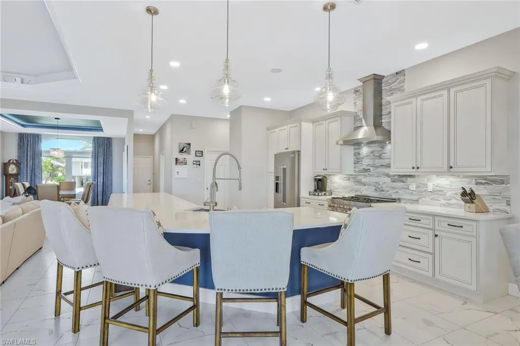 You will not find a more beautiful, well maintained and well-built canal-side home this close to the Gulf! This FOUR bedroom plus den POOL home has it all – a surf and sun lover’s dream, with a desirable SOUTHERN exposure. Search no more because this home is LIKE NEW! Sure to impress even the most sophisticated buyer with just over 2,900 square feet under air, you will enjoy the feeling of spaciousness when friends and family visit! Open great room, NEW kitchen cabinetry, HUGE island, NEW quartz counter tops, gas stove, new stainless appliances, gorgeous pool overlooking canal, NEWER bedroom carpets, NEWER ROOF, NEWER AC, NEWER screens/frame, hurricane impact doors and windows, outdoor kitchen, tons of covered lanai space, a boat dock, Kitchen Aid appliances, 2 car+ garage, minutes to beach! The primary suite provides a private retreat with a spa-inspired bath featuring a stand-alone tub. Sliders, windows, and doors open to a screened lanai with pool, outdoor kitchen, and southern exposure. A brand-new composite dock with dual lifts (10,000 lb and 7,000 lb) provides direct gulf access and makes this a true boater’s paradise. With hurricane-ready features, no flooding from recent hurricanes, NO HOA fees. PRICED TO SELL! If you or someone you know is looking for a home in a boater’s paradise with unmatched water views, look no further! This move-in ready home is perfectly located, close to casual and fine dining, easy access to RSW Airport, the Promenade, Mercato, Waterside Shops, Naples 5th Ave. and so much more. This home blends luxury, comfort, and peace of mind in a highly sought-after waterfront setting.