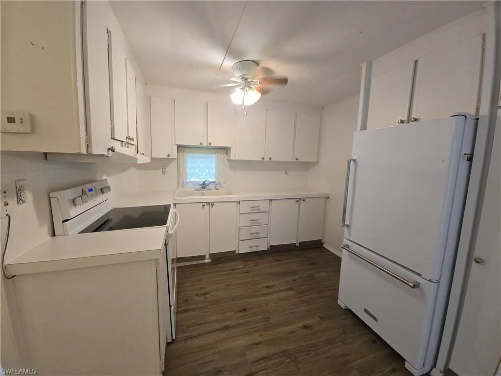 Opportunity awaits in this 2-bedroom, 2-bath double-wide mobile home located in the Enchanting Acres Mobile Home 55+ community in Naples. This home features a spacious living and dining area, a front Florida room, and a functional layout ready for your personal touch and renovations.