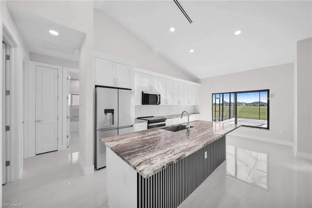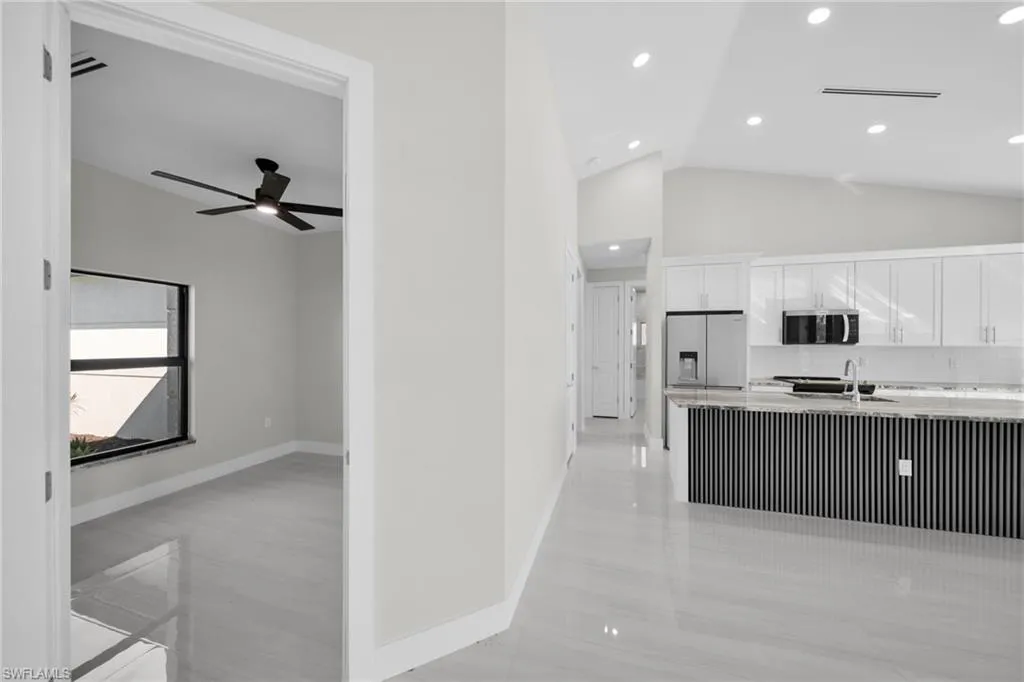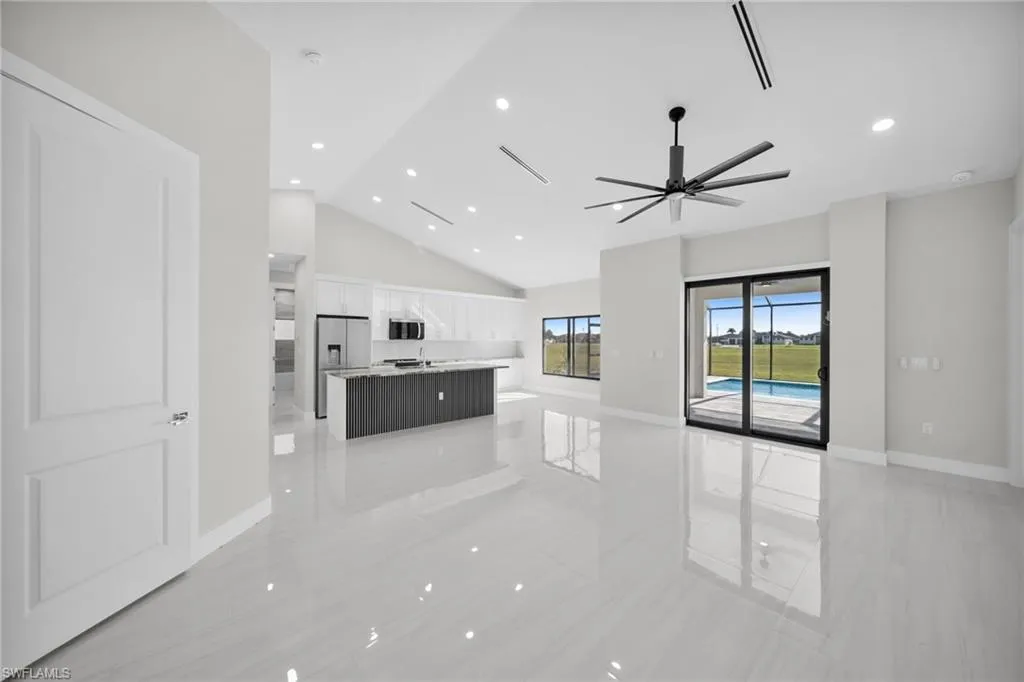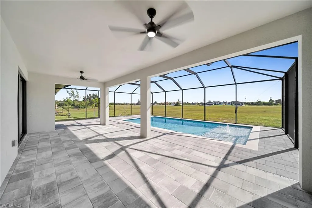 BEST PRICED NEW CONSTRUCTION POOL HOME IN CAPE CORAL! Experience luxury coastal living in this stunning 2025 new construction featuring 3 bedrooms + den, 2 bathrooms,a 3-car garage, and an impressive 14 x 28 pool, full screened. Enjoy 12’ ceilings, 8’ doors, and porcelain tile throughout. The modern kitchen boasts quartz countertops and sleek finishes. The spacious backyard and extra-large driveway offer comfort and convenience. All located in an amazing neighborhood in the heart of Cape Coral! Builder offering closing costs and 10 year warranty!