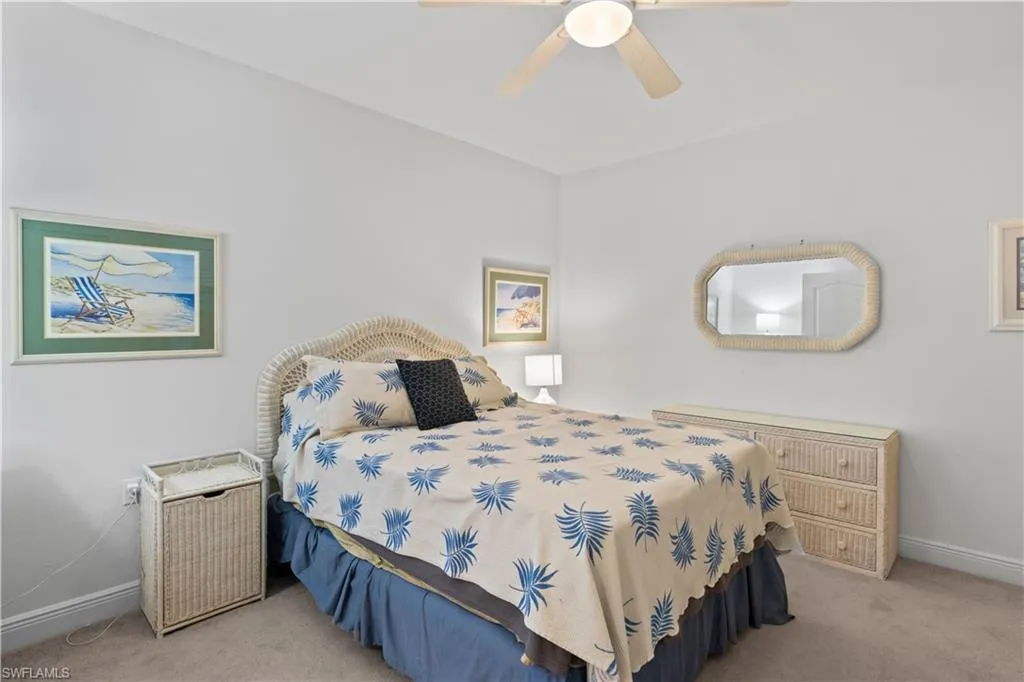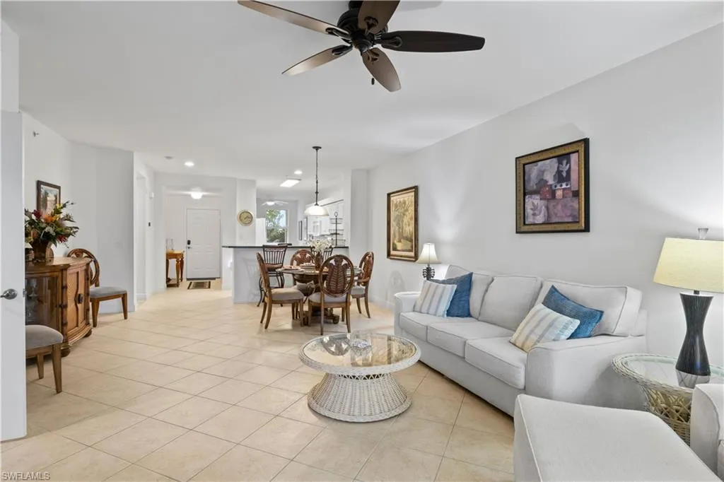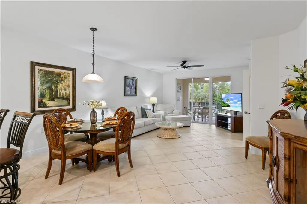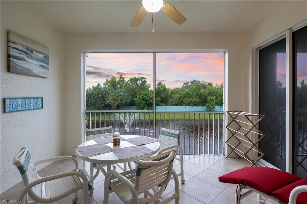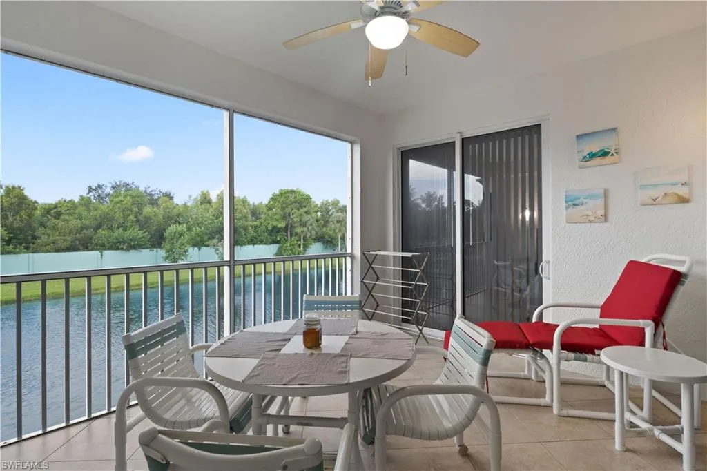 Experience the Best of Southwest Florida Living! This spacious 2-bedroom, 2-bathroom condo offers over 1,400 square feet of comfortable living space, ideally situated on the second floor. This home features natural light that fills the open floor plan, where lake views can be enjoyed from the living room, kitchen, and primary bedroom. The kitchen is designed for both function and style, featuring a breakfast nook, bar seating, and a seamless flow into the formal dining area and main living space. The primary suite is a true retreat, accessible through double doors, and includes direct access to the screened lanai, a large walk-in closet, and tranquil lake views. Offered fully furnished, this condo is move-in ready—just bring your toothbrush and start enjoying the Florida lifestyle. Located in the gated community of Gulf Reflections, you’ll enjoy peaceful lake views, beautifully maintained grounds, and a host of premium amenities. Gulf Reflections features resort-style living, including a heated pool, clubhouse with a fitness center, library, community room, and more. The building has been recently upgraded with a new roof (2023). Assigned covered parking is also included. Whether you’re seeking a full-time residence, a seasonal escape, or a property with rental potential (with some restrictions), this home fits the bill. Pets are welcome (subject to community guidelines). Enjoy close proximity to world-class beaches, golf courses, fishing, boating, shopping, dining, and more. Plus, Fort Myers International Airport is only minutes away perfect for frequent travelers or guests. Don’t miss this opportunity to own a piece of paradise in one of Southwest Florida’s most desirable locations. Schedule your private showing today!