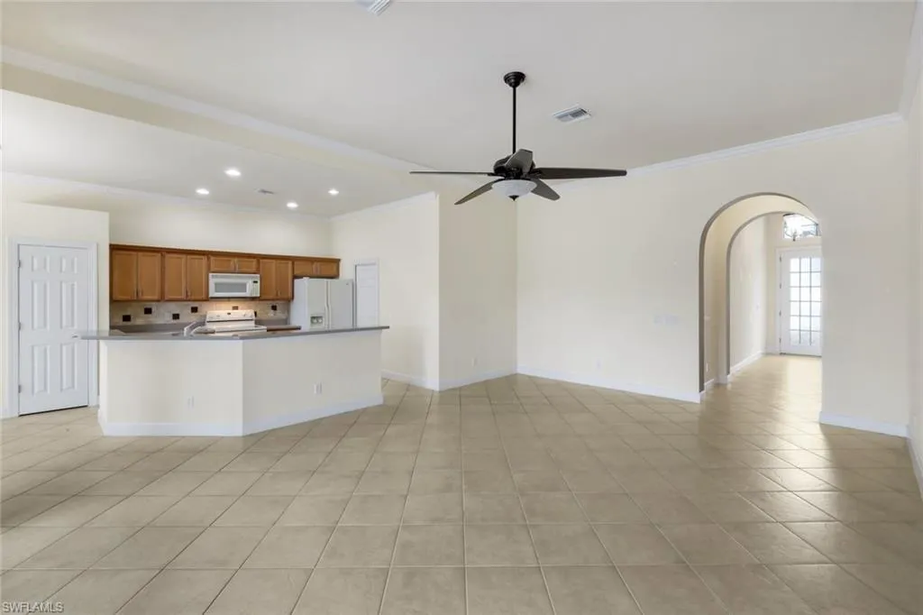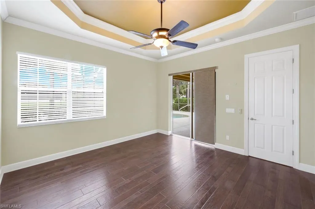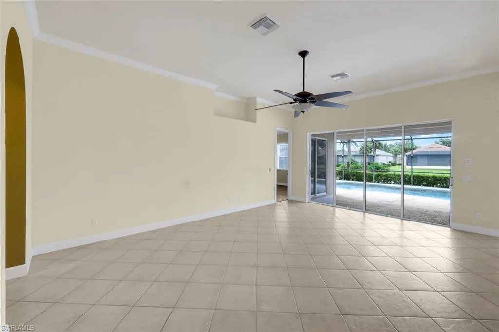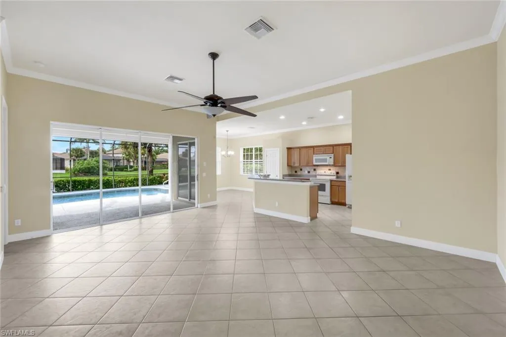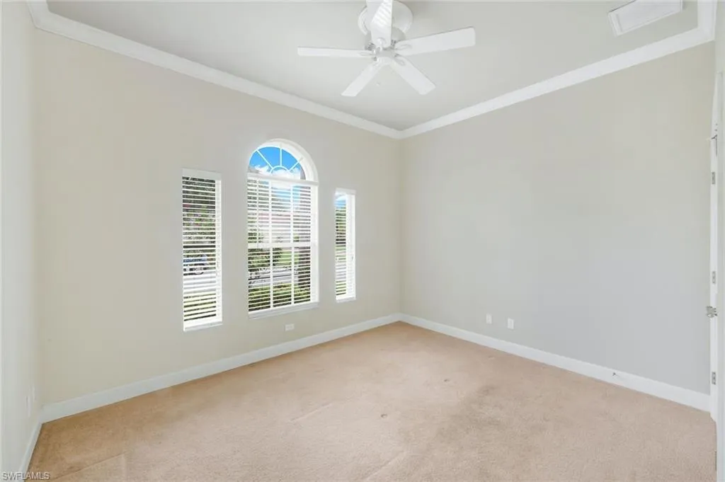This is a well-maintained home in Crown Colony, close to a shopping plaza. This is a two-bedroom home with a den that can be used as a guest room or additional living space. The master suite has an 11-foot high vaulted ceiling and a sliding door out to the pool with a view of the large lake. There are dual closets in the master suite with closet interior upgrades. The master bathroom has dual sinks, a shower, and a tub. A two-car garage provides ample parking space for your vehicles with direct access to the laundry room and kitchen. The pool area deck has been redone, and all new screening have been installed. The ROOF was replaced in 2020. The home has an open concept with plenty of room for all your furniture. Crown Colony is a gated community, and it has many amenities that include tennis, pool, spa, and fitness center. There are golf memberships available to join as well, with all types of memberships from full golf to snowbird golf. The location of Crown Colony is near Ft Myers Beach, Sanibel Island and the beaches, and near the international airport RSW.