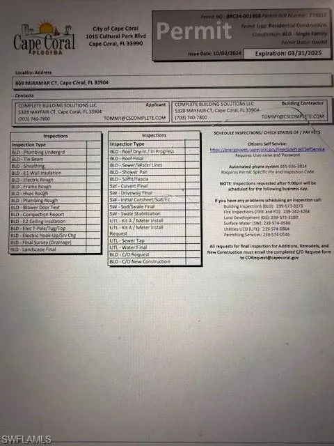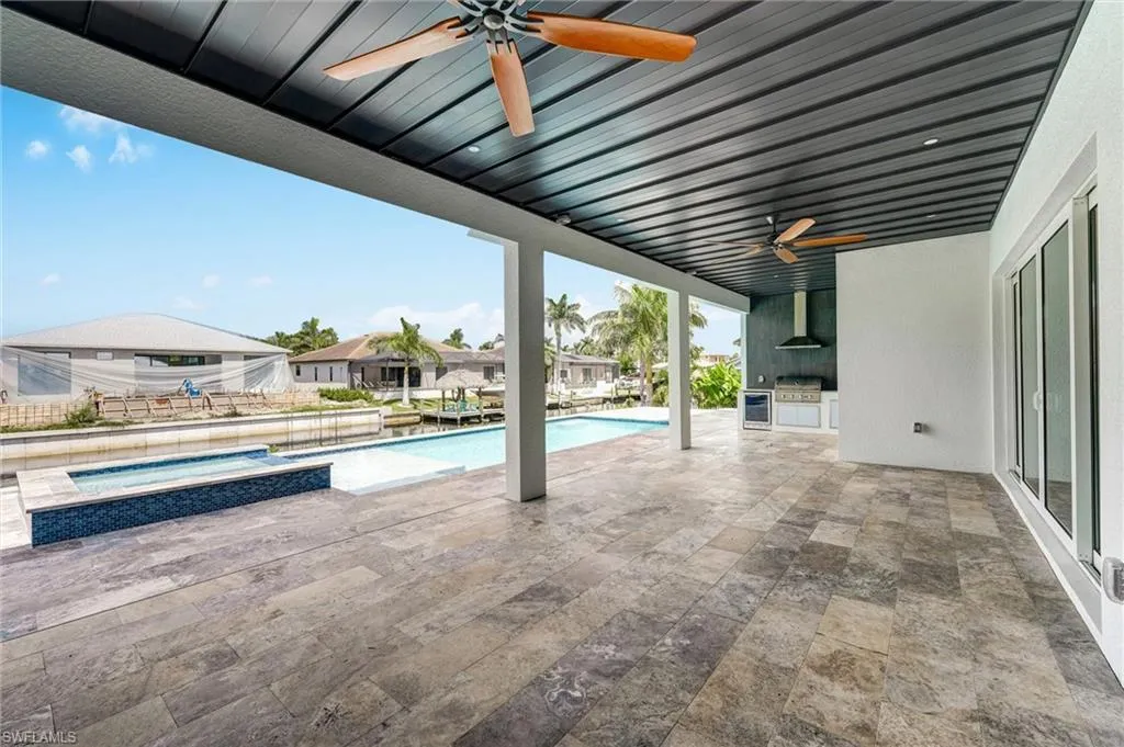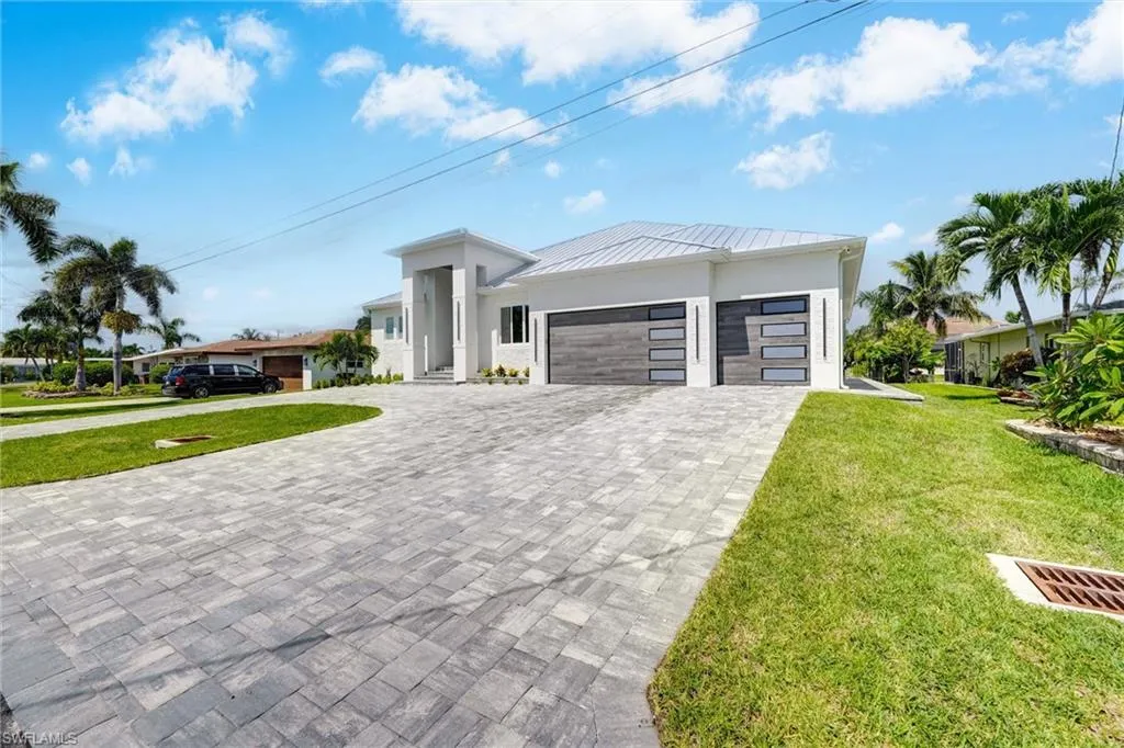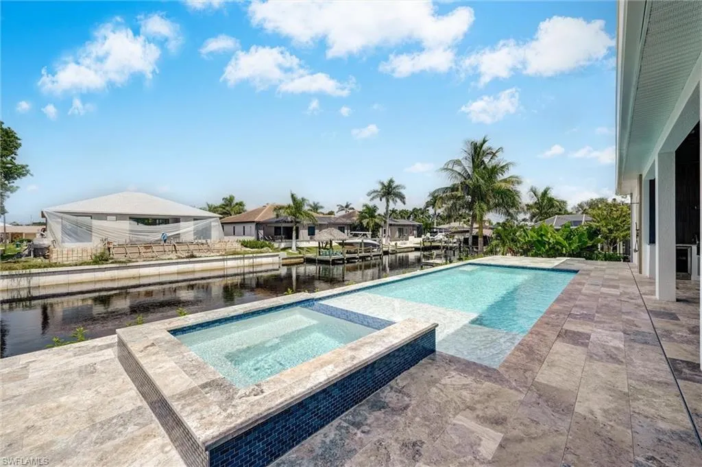 Welcome to 809 Miramar Ct Cape Coral! Incredible Custom Design from Local Cape Coral Custom Home Builder! This stunning custom-built home offers 4,409sq ft of luxurious space. Featuring 4 spacious bedroom, each with its own en-suite bathroom and walk in closet, this home ensures comfort and privacy for everyone. The heart of this home is a massive custom kitchen, perfect for entertaining. Step outside to the expansive lanai and enjoy the swimming pool with built-in hot tub. Then step down to the captain’s walk with firepit, new elevated sea wall and direct sailboat access to the Gulf. Take a short walk out the front door to Cape Coral’s Yacht Club. Additional features include High Efficient variable speed HVAC, High Efficient 65 Gallon Water Heater, Glass Wall office, Wet Bar, Spacious Laundry Room, Outdoor Kitchen. Available Options: Custom Dock, Smart Glass for Office, Frosted Glass covering for Front Door, Pool Cage or Railings for Pool. This home truly offers luxury and convenience!