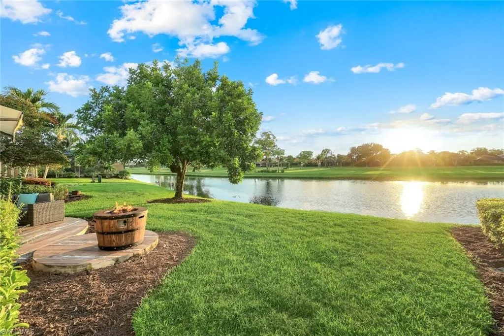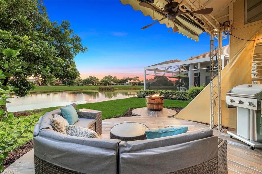 A bold departure from the expected, this architecturally reimagined, design forward residence, distinctively named “The Crow’s Nest” stands in a category of its own within Quail Creek Village and the greater Naples market. Thoughtfully redesigned and rebuilt over nearly eight years, this 3-bedroom + den, 2.5-bath home is the product of vision, craftsmanship, and an uncompromising attention to detail. Central to the home’s design is a cutting edge kitchen that opens to the grand living space. Poured in place concrete countertops, an induction hibachi cooktop with custom venting, sleek Samsung appliances, and exceptional cabinetry create a space that is as functional as it is unforgettable. The original floor plan was completely reconfigured to allow for seamless flow and effortless entertaining, with diagonally laid tile, plantation shutters, crown molding, and abundant natural light blending modern edge with lasting appeal. A thoughtfully constructed west facing addition expands the living space even further, ideal as a media lounge, inspired home office, or sun drenched conversation room. Framed by French doors, this flex space can be closed off for true indoor outdoor living and transitions beautifully to the lakeside terrace. Outdoors, sunset views take center stage. The tiled patio is fully appointed with a gas firepit, motorized sun awning, electric screens and shades, and curated furnishings, creating a private retreat where evenings linger and views never disappoint. The owner’s suite features what can only be described as an experience, not just a bedroom. Dual rain showers, a soaking jetted tub, floor to ceiling tilework, a European style bidet, and even an electric fireplace complete the package. Guest accommodations are equally refined, offering two additional bedrooms and a designer bath complete with dual showers, scalloped accent tile, a floating vanity, and generous closet space. A newly built golf cart garage comfortably fits two vehicles plus a cart, complemented by an extended paver driveway. The home may be purchased fully turnkey, including curated furnishings, one of a kind original artwork, décor, kitchenware, televisions, fireplaces, and even the golf cart. With a proven history as a seasonal rental, this could also be an exceptional opportunity for investors seeking upside potential. Exclusively located within the Quail’s Nest enclave of Quail Creek Village, you will enjoy access to a private cabana and pool steps away which only 53 properties can take advantage of. Homeowners also have the privilege of Social Membership included in the fees with unlimited summer golf, reciprocal play, bocce, tennis, pickleball, and social events at the redone clubhouse. EXTENSIVE UPGRADE LIST IN SUPPLEMENTS!