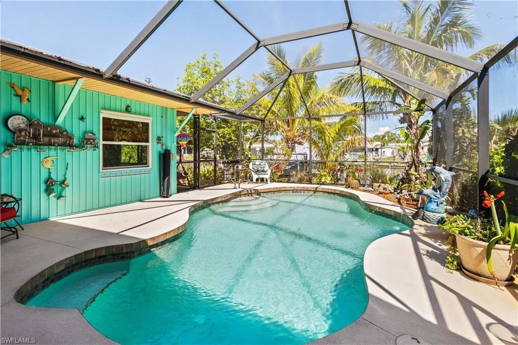 Motivated Seller! Own your piece of Paradise without branking the bank. This home has plenty of outdoor attractions like a pool, dock, concrete seawall, palm trees and Boat Lift. Inside you have tile and wood laminate floors. Updated Kitchen with stainless steel appliances, plenty of Cabinets including a pantry cabinet and Granite countertops. Both baths are updated and the hall bath vanity double bowl sinks. Sliding doors in the Master BR lead to the pool deck. Most of the windows are high rated and the rest have storm shutters. Wind Rated windows (except Living Rm). The family Room is combo with the dining room has many possibilities (20X30 Total). Outside we have a covered front porch(7X16), Pack Patio (36X8), Carport (12X23) with a kayak storage uner roof(3X23), additional storage room (10X10) and aluminum shed (4X6). There is irregation system hooked to a well. HVAC 2 years old. Roof is 6 years over house and 2 years over back room. Propane hot water heater and stove.