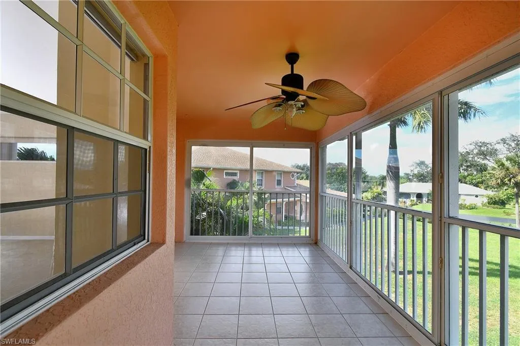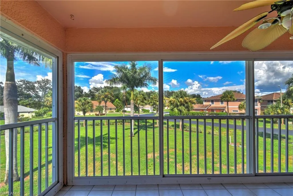 Spacious 3 bedroom, 2 baths, with an attached double garage. Over 1,500 square feet of living area. Strong concrete block construction. On a park like setting. Immaculate condition. Updated kitchen and baths. Beautiful custom built in closets in all the bedrooms. The balcony has screen and sliding glass enclosure expanding the living space even more. City water and sewer. Not in a flood zone. Community has No CDD Tax, no City Tax, 15 minutes from Fenway South JetBlue Park- the Spring Training home of the Boston Red Sox, 18 min. from SW International Airport and only 40 min. to white sandy beaches. Very low Association dues. Not age restricted and is pet friendly! Check this one out before it gets away.