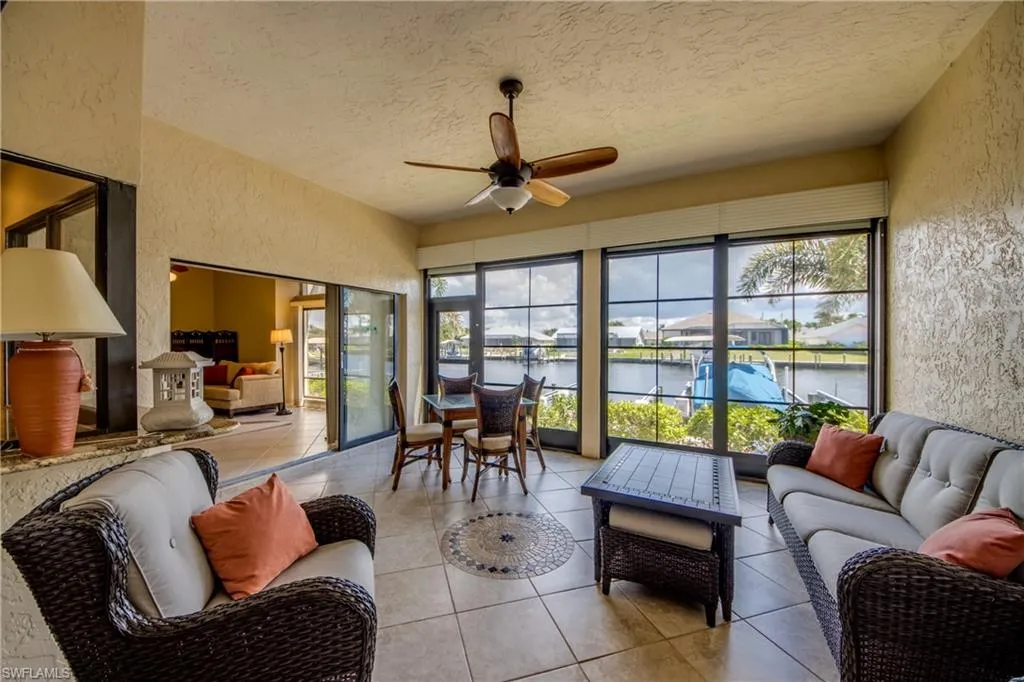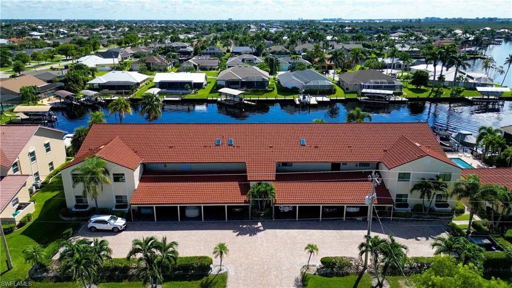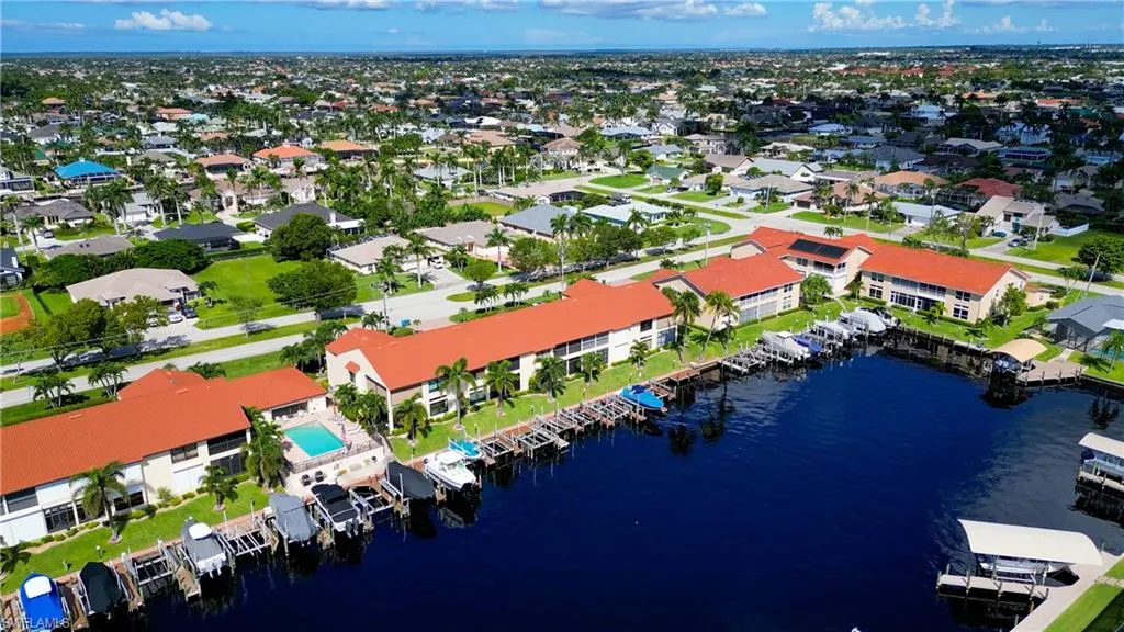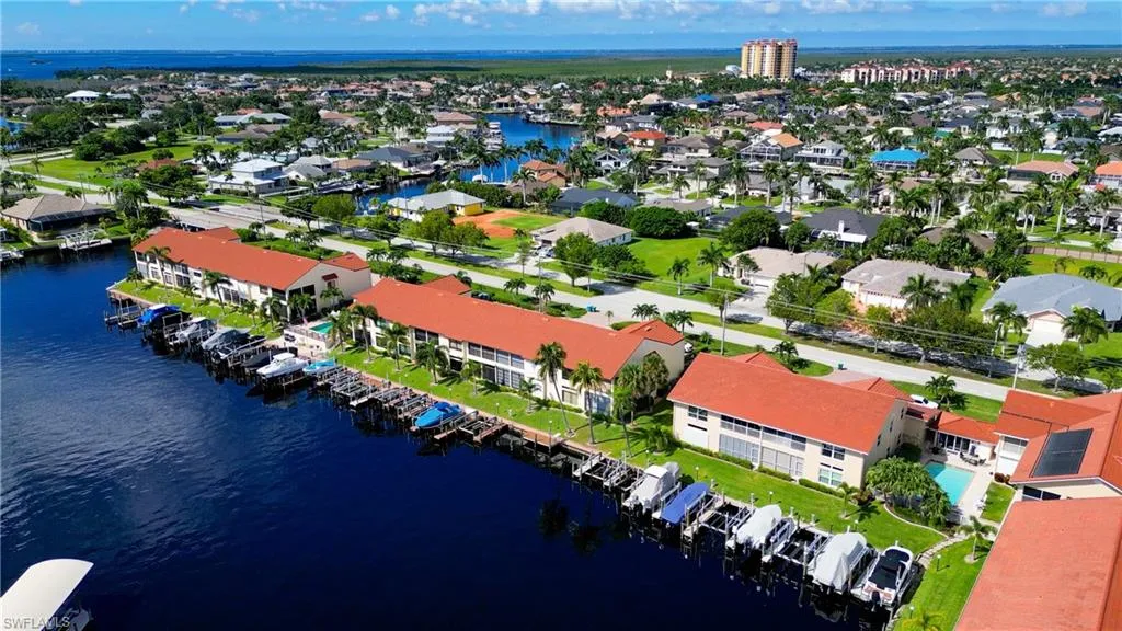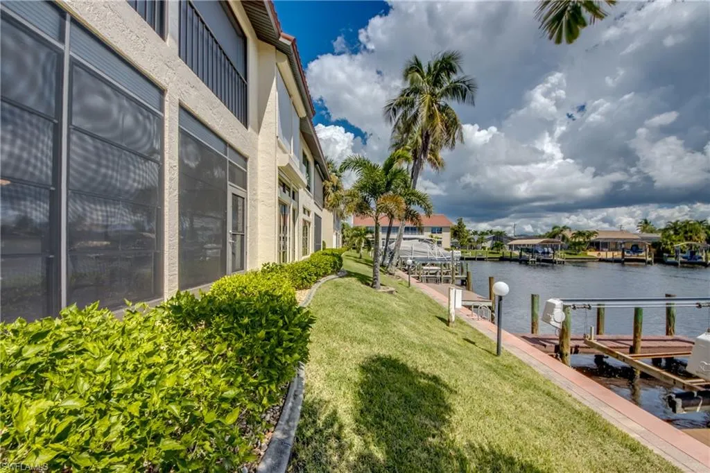 From dawn to dusk, THIS WATERFRONT living carries a TIMELESS CALM—mornings begin with sunrises and coffee on the lanai, afternoons drift by with a book you can’t put down, and evenings bring a cocktail before a leisurely cruise to dinner by boat. Life at Capstan Condos is all about the waterfront lifestyle on a stunning 200’ WIDE CANAL. Open the door to this spacious two-bedroom, two-bath retreat with covered parking and you’ll immediately notice what sets it apart. Soaring VOLUME CEILINGS and oversized windows flood the home with golden light, creating an airy, welcoming atmosphere that feels both grand and inviting. This isn’t your typical condo—it was BUILT AHEADS OF ITS TIME, with a UNIQUE DESIGN that makes the kitchen the heart of the home while still giving privacy to both the guest suite and the master retreat. The kitchen is tastefully designed with 36” wood cabinets accented by glass doors, crown and rope molding, soft close pull out drawers, granite counters, backsplash and pantry. Entertain with ease as the pass-through opens to the lanai, so you never miss the conversation—or the view. The greatroom flows effortlessly to the oversized lanai, where pocketing sliders dissolve the boundary between indoors and out. The master suite is a peaceful retreat on the water, complete with walk-in closet and a spacious bath featuring dual granite vanities with soft-close features. Guests enjoy their own private space on the opposite side of the home, ensuring comfort and privacy. This condo comes with its own ASSIGNED BOAT DOCK AND LIFT (a rare find!), perched on the 200’ wide Bronco Canal just around the corner from TARPON POINT and CAPE HARBOR. With only one bridge out, you’ll be enjoying the Gulf of America in no time at all. Imagine days spent cruising to Sanibel and Captiva, stopping for lunch at waterfront restaurants, fishing off your dock or simply enjoying the sight of dolphins and manatee playing in your backyard. Dinner by boat isn’t just possible—it’s YOUR NEW NORMAL. Peace of mind comes standard here, too. The building has a BRAND-NEW ROOF, storm-ready doors and windows with a mix of ELECTRIC AND MANUAL ROLL DOWN SHUTTERS. NO water intrusion with any storm. Flood insurance won’t keep you up at night, with a TRANSFERABLE POLICY at just $734/year (subject to insurance company approval). Capstan is a 55+ community known for its BEAUTIFULLY MAINTAINED GROUNDS AND WELCOMING ATMOSPHERE. Residents enjoy a heated saltwater pool, clubhouse, BBQ area, fish cleaning station, exterior storage, covered carports and a pavered parking lot. Tucked among million-dollar waterfront homes, the location is as desirable as it is convenient—close to shopping, dining, marinas and just minutes out to the Caloosahatchee River and beyond. This isn’t just a condo, it’s your well-earned escape—sun-drenched mornings, barefoot boating afternoons and evenings where neighbors become friends and every sunrise feels like a celebration. SUNRISE TO SUNSET, PURE PARADISE!