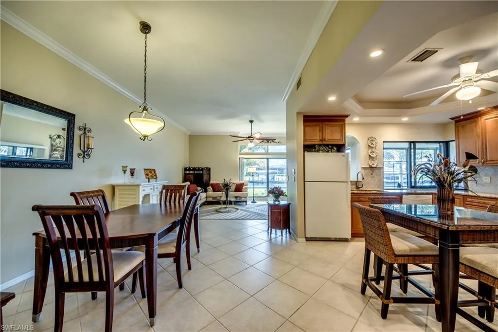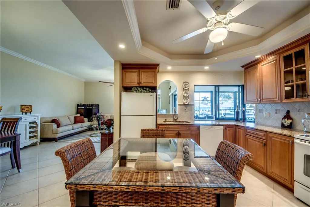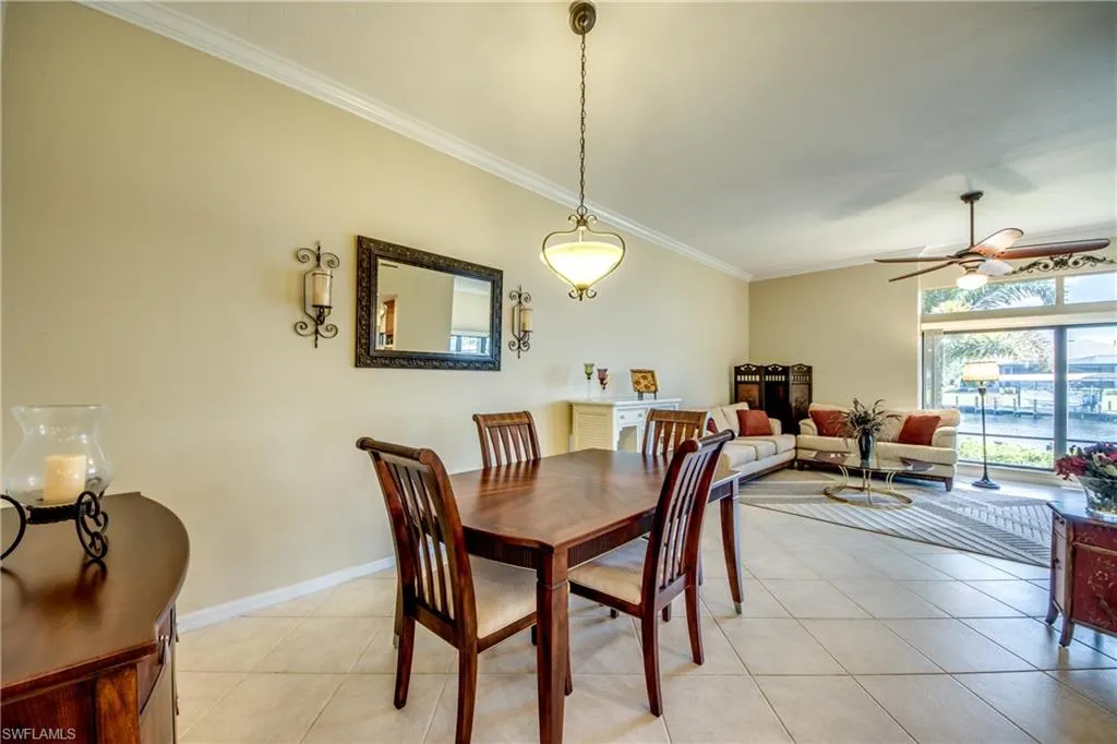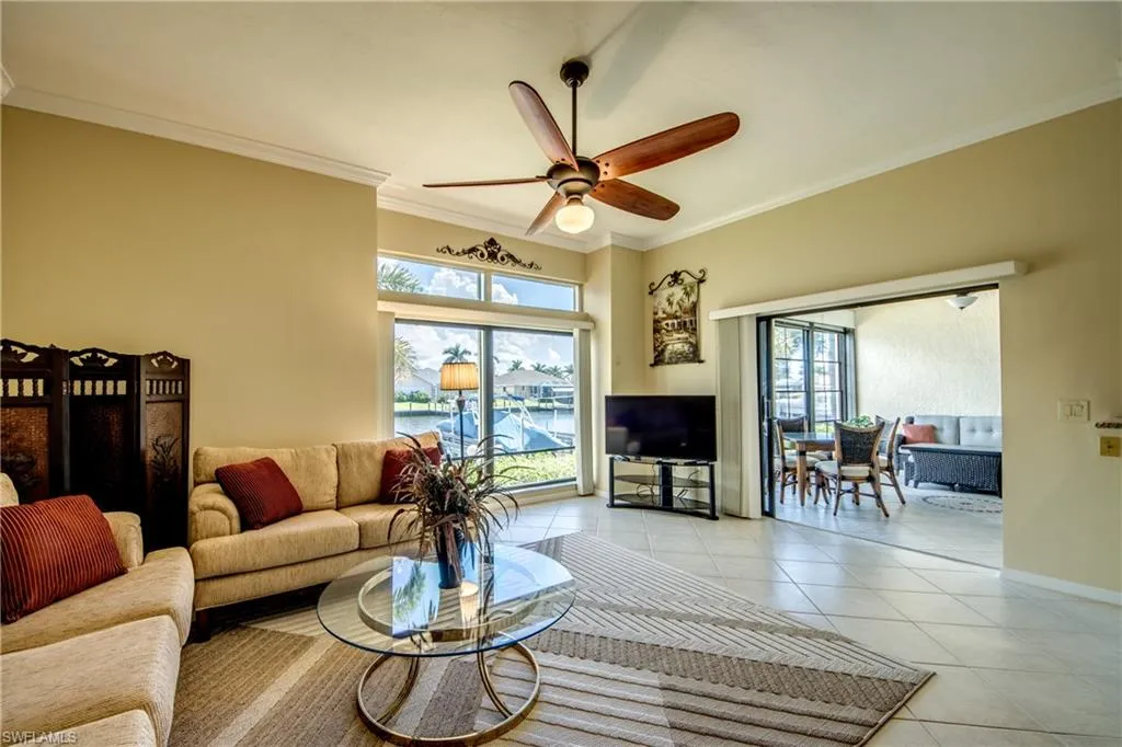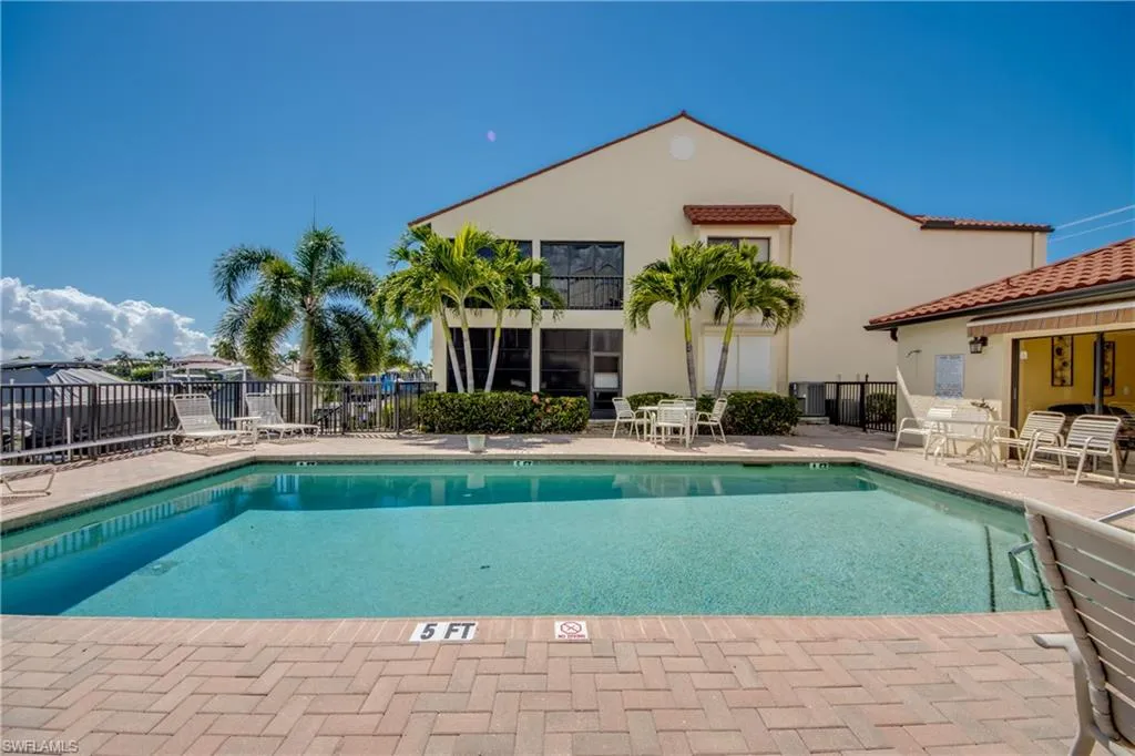 From dawn to dusk, THIS WATERFRONT living carries a TIMELESS CALM—mornings begin with sunrises and coffee on the lanai, afternoons drift by with a book you can’t put down, and evenings bring a cocktail before a leisurely cruise to dinner by boat. Life at Capstan Condos is all about the waterfront lifestyle on a stunning 200’ WIDE CANAL. Open the door to this spacious two-bedroom, two-bath retreat with covered parking and you’ll immediately notice what sets it apart. Soaring VOLUME CEILINGS and oversized windows flood the home with golden light, creating an airy, welcoming atmosphere that feels both grand and inviting. This isn’t your typical condo—it was BUILT AHEADS OF ITS TIME, with a UNIQUE DESIGN that makes the kitchen the heart of the home while still giving privacy to both the guest suite and the master retreat. The kitchen is tastefully designed with 36” wood cabinets accented by glass doors, crown and rope molding, soft close pull out drawers, granite counters, backsplash and pantry. Entertain with ease as the pass-through opens to the lanai, so you never miss the conversation—or the view. The greatroom flows effortlessly to the oversized lanai, where pocketing sliders dissolve the boundary between indoors and out. The master suite is a peaceful retreat on the water, complete with walk-in closet and a spacious bath featuring dual granite vanities with soft-close features. Guests enjoy their own private space on the opposite side of the home, ensuring comfort and privacy. This condo comes with its own ASSIGNED BOAT DOCK AND LIFT (a rare find!), perched on the 200’ wide Bronco Canal just around the corner from TARPON POINT and CAPE HARBOR. With only one bridge out, you’ll be enjoying the Gulf of America in no time at all. Imagine days spent cruising to Sanibel and Captiva, stopping for lunch at waterfront restaurants, fishing off your dock or simply enjoying the sight of dolphins and manatee playing in your backyard. Dinner by boat isn’t just possible—it’s YOUR NEW NORMAL. Peace of mind comes standard here, too. The building has a BRAND-NEW ROOF, storm-ready doors and windows with a mix of ELECTRIC AND MANUAL ROLL DOWN SHUTTERS. NO water intrusion with any storm. Flood insurance won’t keep you up at night, with a TRANSFERABLE POLICY at just $734/year (subject to insurance company approval). Capstan is a 55+ community known for its BEAUTIFULLY MAINTAINED GROUNDS AND WELCOMING ATMOSPHERE. Residents enjoy a heated saltwater pool, clubhouse, BBQ area, fish cleaning station, exterior storage, covered carports and a pavered parking lot. Tucked among million-dollar waterfront homes, the location is as desirable as it is convenient—close to shopping, dining, marinas and just minutes out to the Caloosahatchee River and beyond. This isn’t just a condo, it’s your well-earned escape—sun-drenched mornings, barefoot boating afternoons and evenings where neighbors become friends and every sunrise feels like a celebration. SUNRISE TO SUNSET, PURE PARADISE!
