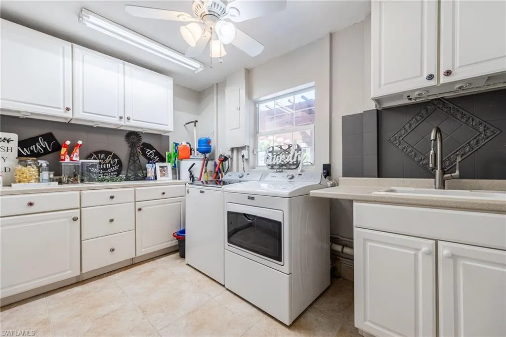 Practical updates enhance the home’s appeal. The roof was replaced in 2023, ensuring lasting quality, while the property also includes a detached, air-conditioned outbuilding in addition to the garage, extending the home’s usable space. A separate laundry room, complete with cabinetry and a sink, is thoughtfully positioned outside the main living areas for convenience and organization.