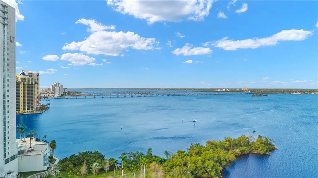 LOWEST PRICE 07 FLOOR PLAN, located on the 23rd Floor! Spoil yourself, you deserve it, with the most stunning views Southwest Florida has to offer and call this luxurious condo home. Nestled within walking distance of the historic and vibrant Downtown River District, this spacious condo boasts upgraded appliances, modern style, unparalleled views from your private balconies, a large den with floor to ceiling windows, a relaxing master bath, master bedroom with river views, a full-size washer and dryer and more. The Oasis Tower One is meticulously maintained and offers the best amenities with a resort style pool and spa, clubroom, billiard room, library, modern fitness center with all the equipment you need for a full body workout, pickleball, tennis, BBQ grills and more. Whether you are looking for a seasonal residence to escape the harsh winters, or wanting to live here full time, this luxurious building is everything you have been looking for and more. Call us today for your private tour and be settled into your new home before the holidays!