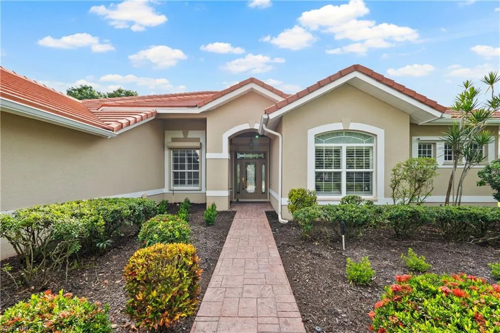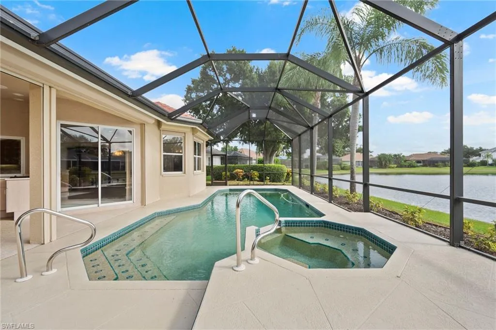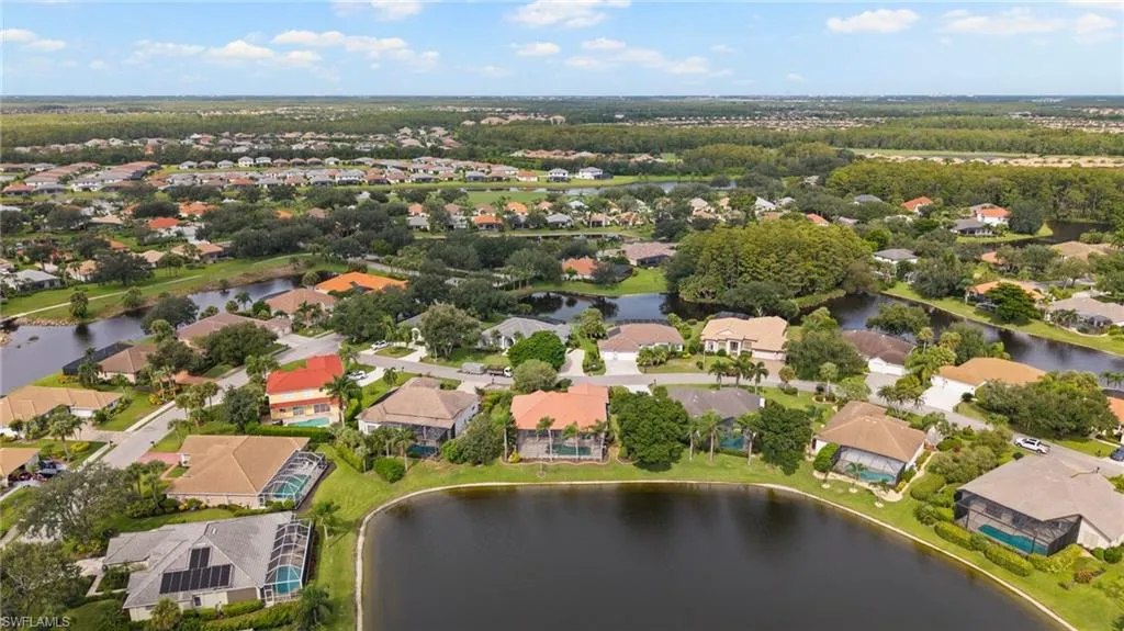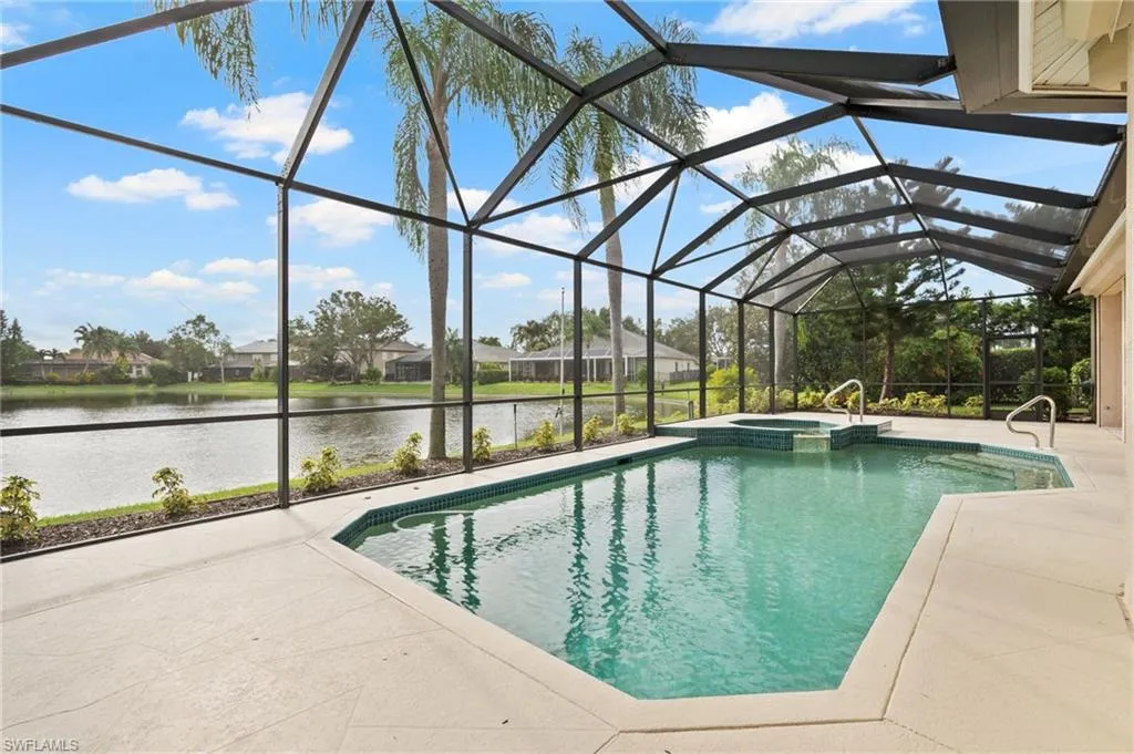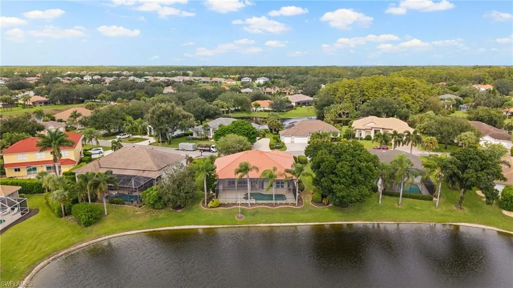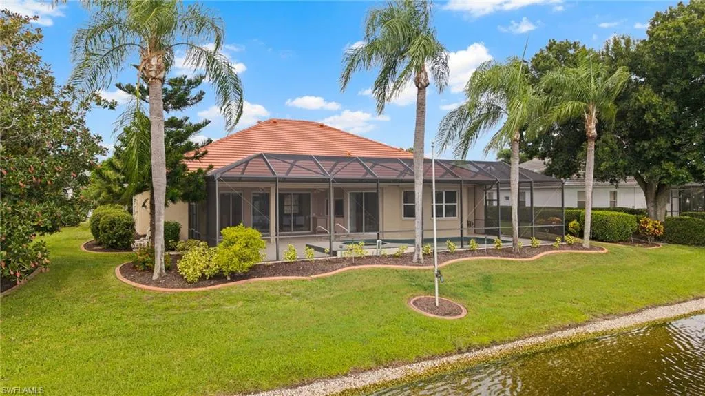 Lakefront Pool + Spa Home with Volume Ceilings and a Sprawling Primary Suite. Custom-Built in 1997, this one-owner home has been treasured and meticulously maintained, but is now ready for you to make it your own. Starting outside, there is a NEW ROOF and SCREEN ENCLOSURE (2018), gorgeous bottle brush tree in the front yard, and well-established landscaping with matching concrete edging around the entire perimeter. The window and door openings are protected with motorized roll-down storm shutters for your safety and peace of mind. Stepping inside, you’ll first notice the view of the lake through the sliding glass doors, and then the volume ceilings with multiple transitions and trim detailing. The entire home is outfitted with a Vantage Lighting System with automations that control multiple lights and zones of the house at once. There’s even an “AWAY” button to turn off every light in the house with the push of one single button! (Now that’s what I call luxury!) As you enter, the primary suite, guest half bath and home office are to your right… the dining room, kitchen, family room and guest bedrooms are to your left. Each space is well proportioned and maximizes the lake views and natural light. The kitchen has ample counter space with a desk, built-in pantry, center island and a pass-through window to the lanai where you’ll find an outdoor sink, mini fridge and counter space (perfect for holiday gatherings!) The pool deck is stamped concrete, fully screened, and equipped with a pool bathroom for ultimate convenience. Situated on a quiet street within the gated community of Gateway Greens, this home and its surroundings are serene. Gateway Greens is a private enclave within the master-planned Gateway community in Fort Myers, featuring golf course views, walking paths, and beautiful tree-lined streets. With quick access to I-75, RSW Airport, JetBlue Park, shopping, dining, and top schools, this highly desirable location offers both convenience and charm—imagine all the ways you can make it your own!