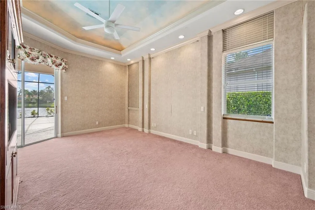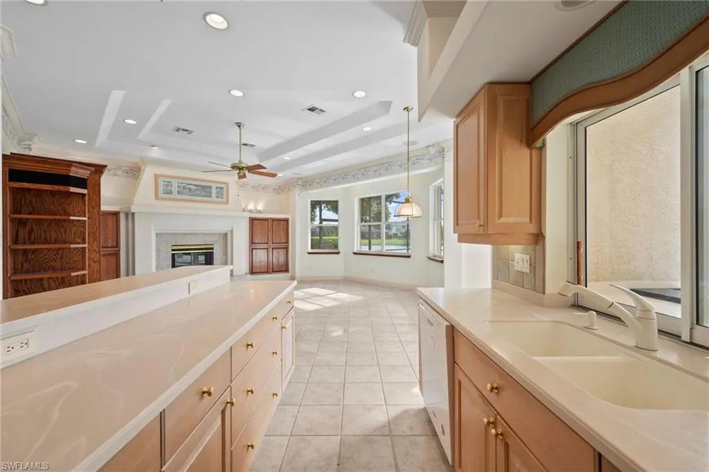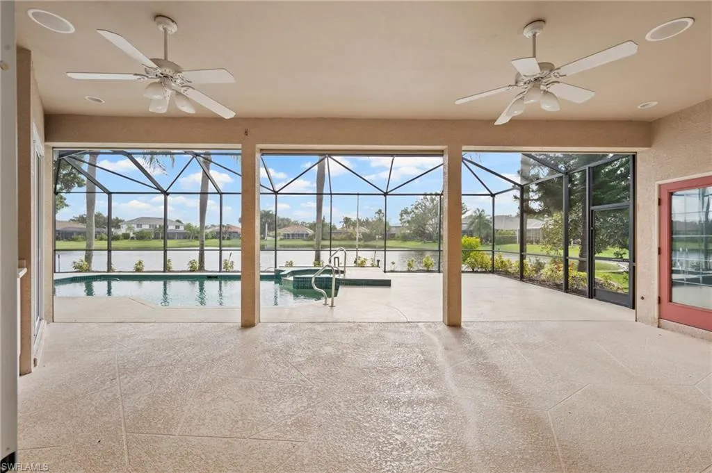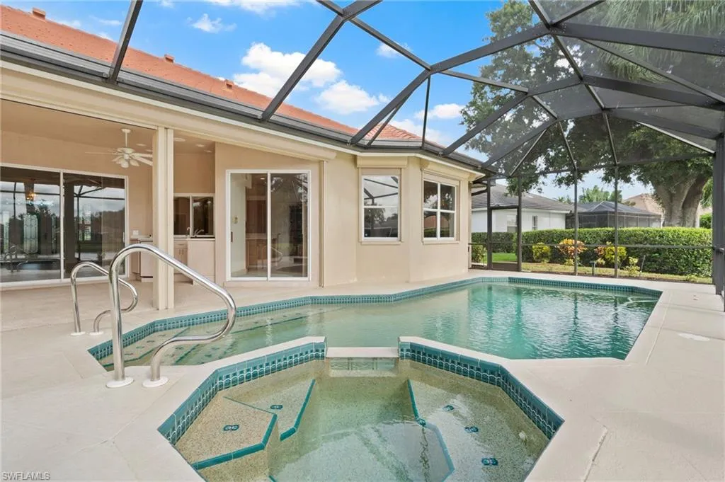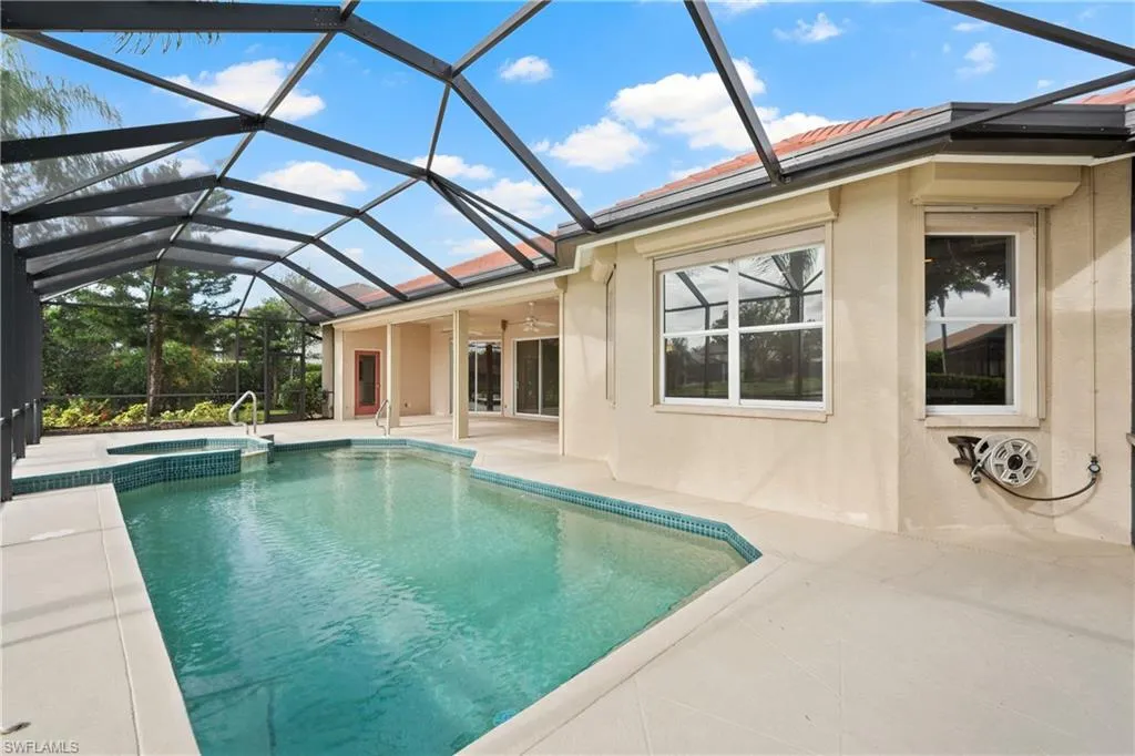 Lakefront Pool + Spa Home with Volume Ceilings and a Sprawling Primary Suite. Custom-Built in 1997, this one-owner home has been treasured and meticulously maintained, but is now ready for you to make it your own. Starting outside, there is a NEW ROOF and SCREEN ENCLOSURE (2018), gorgeous bottle brush tree in the front yard, and well-established landscaping with matching concrete edging around the entire perimeter. The window and door openings are protected with motorized roll-down storm shutters for your safety and peace of mind. Stepping inside, you’ll first notice the view of the lake through the sliding glass doors, and then the volume ceilings with multiple transitions and trim detailing. The entire home is outfitted with a Vantage Lighting System with automations that control multiple lights and zones of the house at once. There’s even an “AWAY” button to turn off every light in the house with the push of one single button! (Now that’s what I call luxury!) As you enter, the primary suite, guest half bath and home office are to your right… the dining room, kitchen, family room and guest bedrooms are to your left. Each space is well proportioned and maximizes the lake views and natural light. The kitchen has ample counter space with a desk, built-in pantry, center island and a pass-through window to the lanai where you’ll find an outdoor sink, mini fridge and counter space (perfect for holiday gatherings!) The pool deck is stamped concrete, fully screened, and equipped with a pool bathroom for ultimate convenience. Situated on a quiet street within the gated community of Gateway Greens, this home and its surroundings are serene. Gateway Greens is a private enclave within the master-planned Gateway community in Fort Myers, featuring golf course views, walking paths, and beautiful tree-lined streets. With quick access to I-75, RSW Airport, JetBlue Park, shopping, dining, and top schools, this highly desirable location offers both convenience and charm—imagine all the ways you can make it your own!