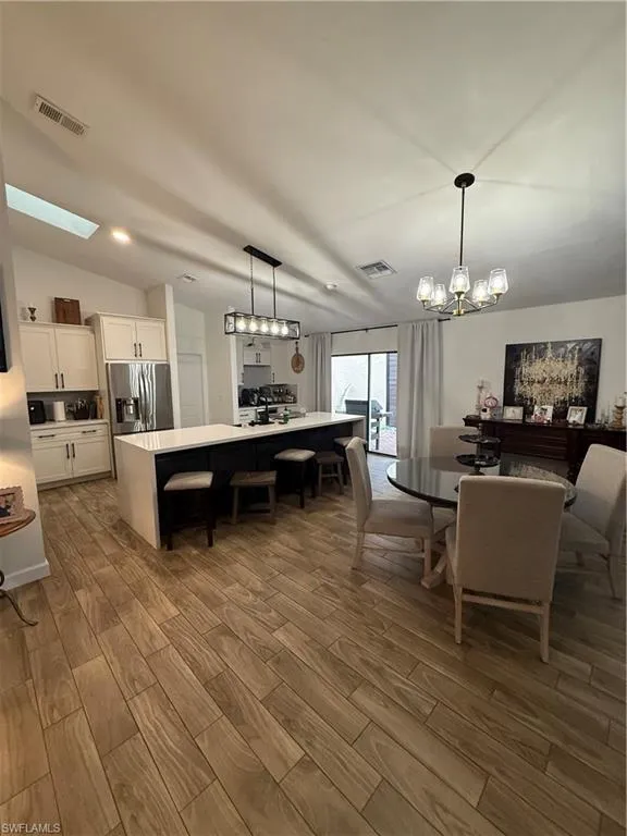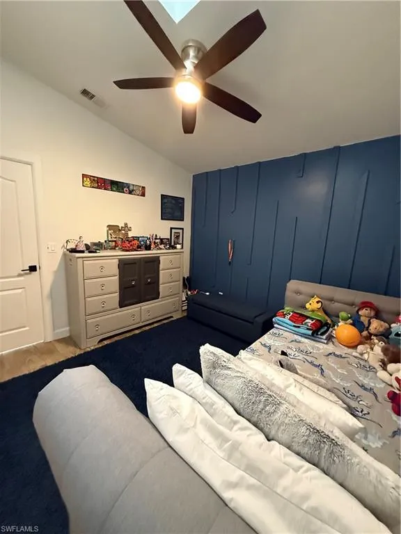 Skylights bring in natural light throughout the home, creating a bright and open feel. A screened-in lanai overlooks the backyard, providing an ideal setting for relaxing or entertaining.
