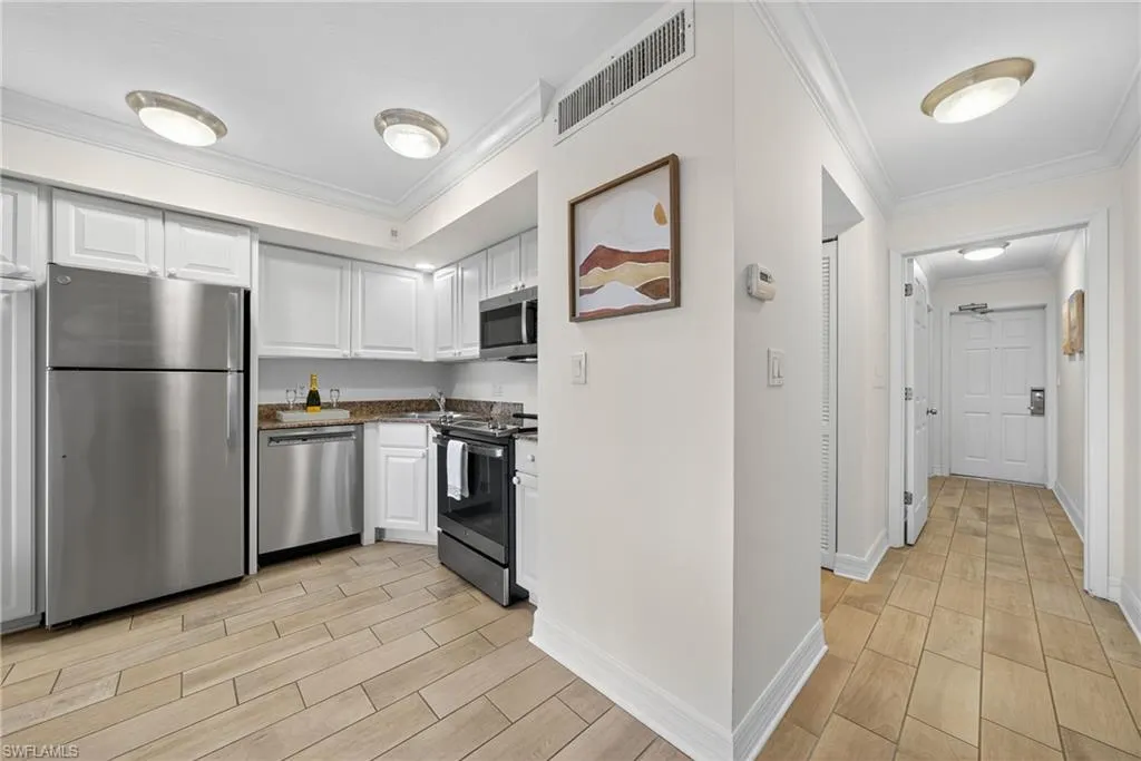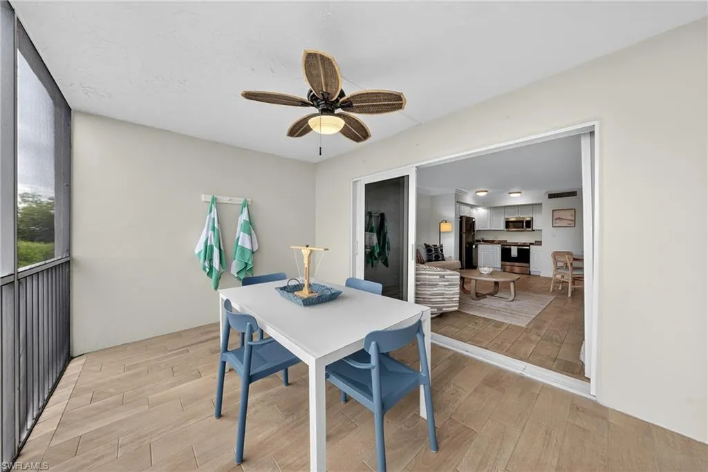 At 5132 Bayside Villas, each day is written in light, water, and breeze. Dawn begins on the lanai, where Pine Island Sound awakens with color—sunrise glows across the horizon, pelicans skim the waves, and fishing boats slip toward open water. The bay becomes your backdrop, alive with sails, seabirds, and the shifting palette of the sky. The villa itself balances coastal charm with modern ease. A 1BD/2BA first-floor retreat, it offers granite counters, stainless appliances, crisp cabinetry, wide-plank tile flooring, and crown molding. The living spaces flow naturally to the lanai, where the outdoors remains the centerpiece. The primary suite offers a calm retreat, while a second bath mirrors the same fresh finishes. Yet what makes this villa extraordinary is not just the design—it’s the rhythm of Captiva life outside its doors. Within minutes, you can sink your feet into the Gulf sands, celebrated for their shells and sunlit shallows. Island pathways invite golf cart rides and bike cruises into Captiva Village, where the hum of music, dining, and laughter sets a different tempo. Afternoons bring choices: a swim in the bayside pool, a paddle through calm waters where dolphins are frequent companions, or a wander through palm-lined trails. As the day winds down, the stage shifts once more. Perhaps you’ll gather with neighbors for cocktails while the boats return across the channel or cross the island to witness sunset blaze into the Gulf. And when evening deepens, stars scatter above the mangroves, promising another sunrise to come. With amenities like under-building parking, private storage, and a bayside pool and spa, 5132 Bayside Villas offers not just a home but an island way of life—measured in sunrises, sails, and timeless Captiva moments.