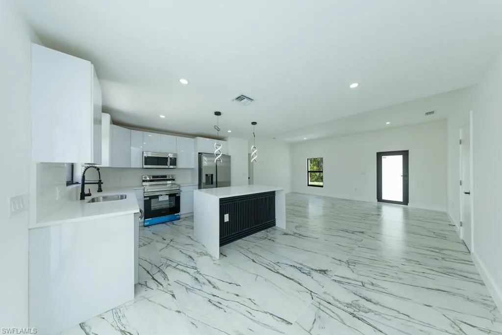 Brand-new modern single-family home featuring 3 bedrooms and 2 bathrooms on a spacious 0.5-acre lot in Alva. This new construction offers an open-concept layout with a designer kitchen that includes beautiful countertops, soft-close cabinets, and stainless steel appliances. The owner’s suite boasts a walk-in closet and a private bath with a tiled walk-in shower. Additional highlights include a split-bedroom floor plan, an interior laundry room with a washer and dryer included, and an attached 2-car garage. The oversized lot provides ample space for a pool, workshop, or RV/boat parking— all with NO HOA or deed restrictions.