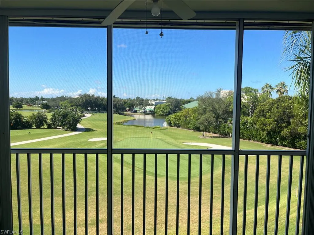 This one bedroom one bathroom has updated kitchen cabinets with nice storage space. The Vanities in the bathroom and the dressing area are updated too. This unit is on the top floor in the condo (no one above you here) which captures the views of the golf course and lakes. Screened in lanai with Hurricane Shutters that you can be pulled closed and locked for added protection. The windows in the kitchen and bedroom are impact resistant also. There is a closet off the lanai and an additional closet by the elevators for storage. This is a 55+ Gated Community is peacefully set in the middle of everything there is to do in South Fort Myers. Close to RSW International Airport, and Punta Gorda Airport which offers you options for you to frequent this as your seasonal home or if you intend to live full time. Golfing is Bundled in your Fees for 2 Owners to Play as you Desire. Putting Green, Driving Range. 6 Tennis Courts, Pickleball, Bocce Ball or Shuffleboard. Many Cards and Game Groups, Planned lifestyle events and outings. Live Music events and Entertainment brought in for you and your guests. “Tee Room” Restaurant/Bar, Great Neighbors and Social Support. Close to shopping, restaurants, everything you need is here or just outside our gates. Condo fees cover all your amenities plus your internet/cable, water, sewer, trash removal, lawn maintenance, you pay your electricity. Great fun, friendly community!