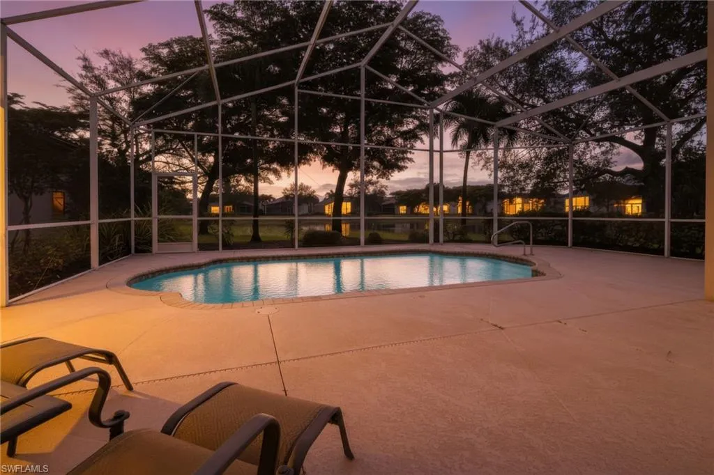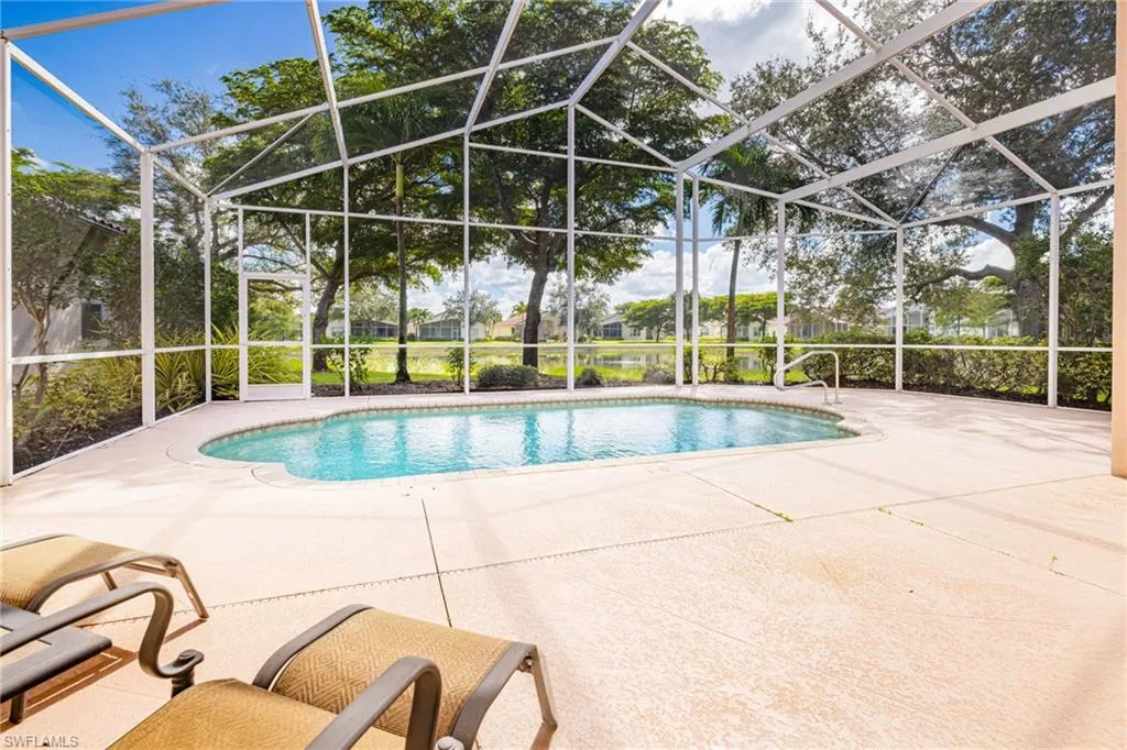 Welcome to your own private retreat in the heart of Estero! Tucked inside the highly desirable Cascades at Estero, a premier 55+ community known for its vibrant social scene and resort-style amenities, this home offers the perfect balance of comfort and Florida living. The oversized screened lanai showcases a sparkling heated pool that seems to spill seamlessly into the tranquil pond beyond, creating the ultimate backdrop for sipping your morning coffee or hosting evening get-togethers surrounded by lush landscaping. Inside, the kitchen shines with granite countertops, stainless steel appliances, a chic tile backsplash, under-cabinet lighting, recessed LED lighting, and a pantry for storage, while the spacious primary suite is designed to pamper with a walk-in closet, dual sinks, a vanity area, soaking tub, walk-in shower, and private water closet. Custom sunshades, manual storm shutters, and a built-in alarm system provide comfort and peace of mind, and the home was tastefully refreshed in 2017 with updated paint, carpeting, and neutral finishes that create a bright, move-in-ready atmosphere. Additional highlights include crown molding, a two-car garage, and essential updates like a new water heater (2022) plus a 2017 AC, pool heater, and kitchen appliances. Life in Cascades at Estero is second to none with a clubhouse offering indoor and outdoor pools, a billiards room, library, card rooms, an arts and crafts studio with a kiln, and a fitness center with a dance studio, showers, and saunas, while sports enthusiasts can enjoy Har-Tru tennis courts, pickleball, and bocce with active leagues. A lively events calendar keeps things fun and social with entertainment, theater shows, dances, and community gatherings in the grand ballroom, and the location couldn’t be better—just minutes to Naples, Bonita Springs, and Fort Myers with quick access to white-sand Gulf beaches, shopping, dining, I-75, and RSW airport. Low HOA fees make it even more appealing, offering you the opportunity to embrace the Southwest Florida lifestyle in a community designed to keep you active, connected, and inspired. Some photos are virtually staged.