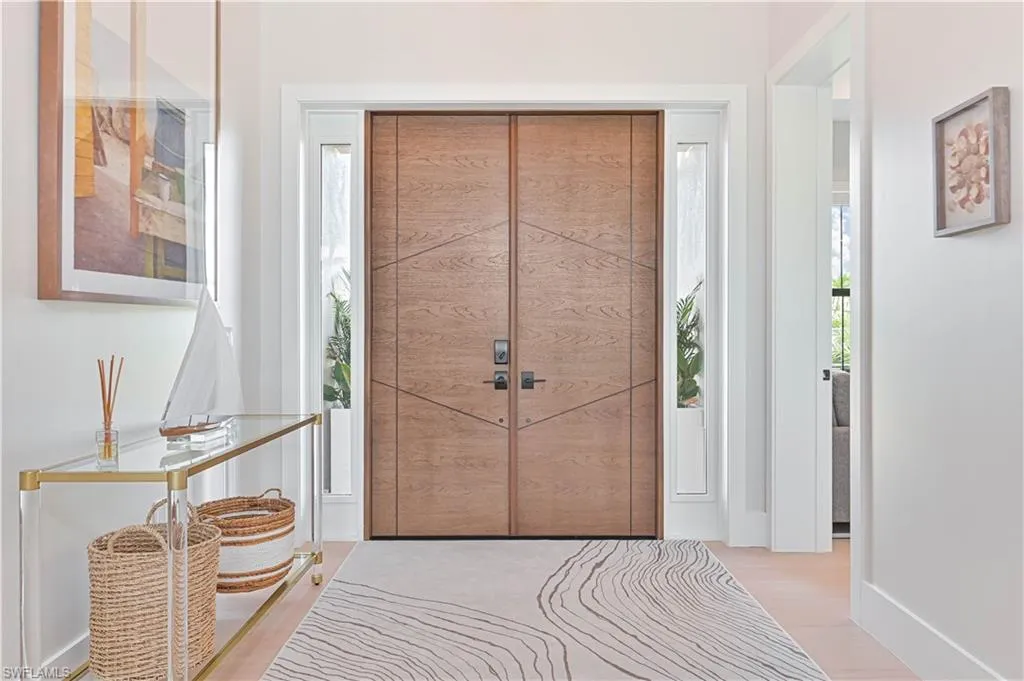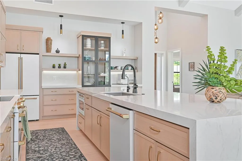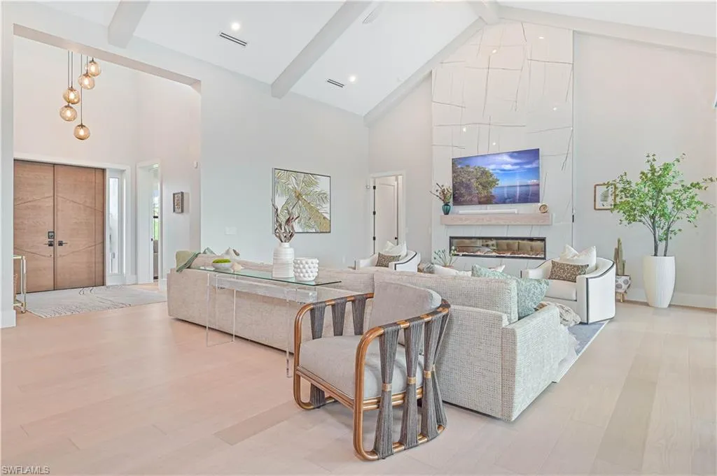 Experience the best of both worlds in this stunning custom-built estate in highly sought-after Naples Park, ideally situated just moments from Vanderbilt Beach and Mercato. Spend your days by the Gulf and your evenings enjoying world-class dining, shopping, and entertainment—all within easy reach. Completed in 2025, this exquisite residence offers over 3,000 square feet of luxurious living space on a rare double lot, showcasing exceptional craftsmanship and thoughtful details throughout. Highlights include engineered white oak floors, coffered ceilings with wood accents, and an open-concept floor plan filled with natural light. Each bedroom features its own private en suite bath, while the gourmet kitchen is a chef’s dream with quartz countertops, a walk-in pantry, white oak cabinetry, induction cooktop/oven, GE Café refrigerator, and upgraded appliances. The home is equipped with state-of-the-art systems including foam insulation, commercial-grade A/C units, reverse osmosis with Culligan whole-house water treatment, tankless water heater, Generac generator with 500-gallon propane tank, and Starlink internet. Additional conveniences include a spacious laundry room with custom cabinetry and drying racks, mudroom with built-in storage, and a three-car garage with epoxy floors and overhead racks. Outdoor living is equally impressive with extensive landscape lighting, irrigation from a private well, a full summer kitchen, and a screened-in covered lanai with color-changing LED lighting, all surrounding a heated saltwater pool. This exceptional residence embodies luxury coastal living at its finest.