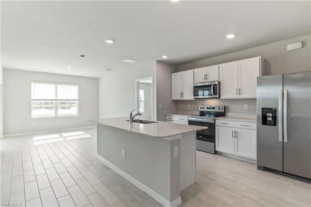 Welcome to Coral Bay! Explore our Aria Plan at 1672 sf of living space. This luxurious 3 bedroom, 2 bathroom, 2 car garage home delivers all the modern amenities for comfortable living. The open and spacious kitchen boasts solid surface countertops and large center island, stainless appliances, and light shaker style cabinets. All window treatments are included. The primary en suite includes solid surface countertops, dual vanity and a walk-in shower with 18” wall tile, and an expansive linen closet with additional hanging space. Other features include a laundry room, with washer and dryer included, 6”x24” plank ceramic tile throughout, and the latest in Smart Home technology. Enjoy living in this gated, single family home community, conveniently located near I-75, downtown Ft. Myers River District, quaint downtown Punta Gorda, shopping, boating, medical care and so much more. The amenity center is OPEN NOW and includes a clubhouse with fitness facility, resort style pool, bocce and pickleball courts, playground and tot lot.